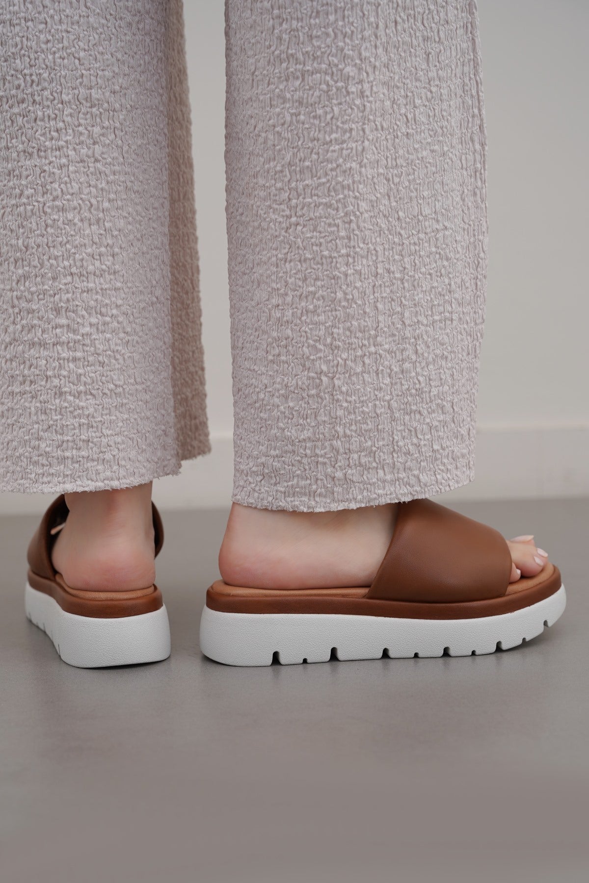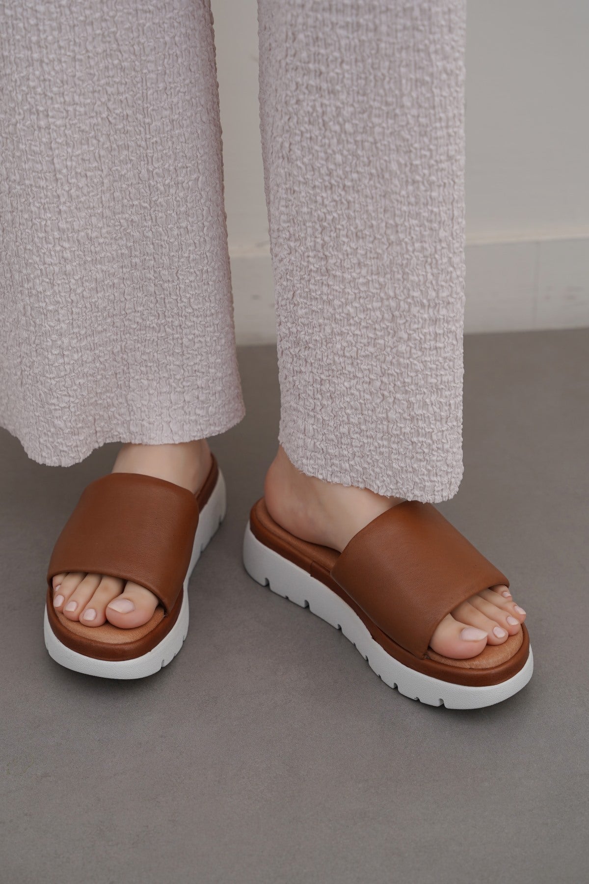 Genuine Leather marshmallow soft mama wedge slides with real memory foam insole.