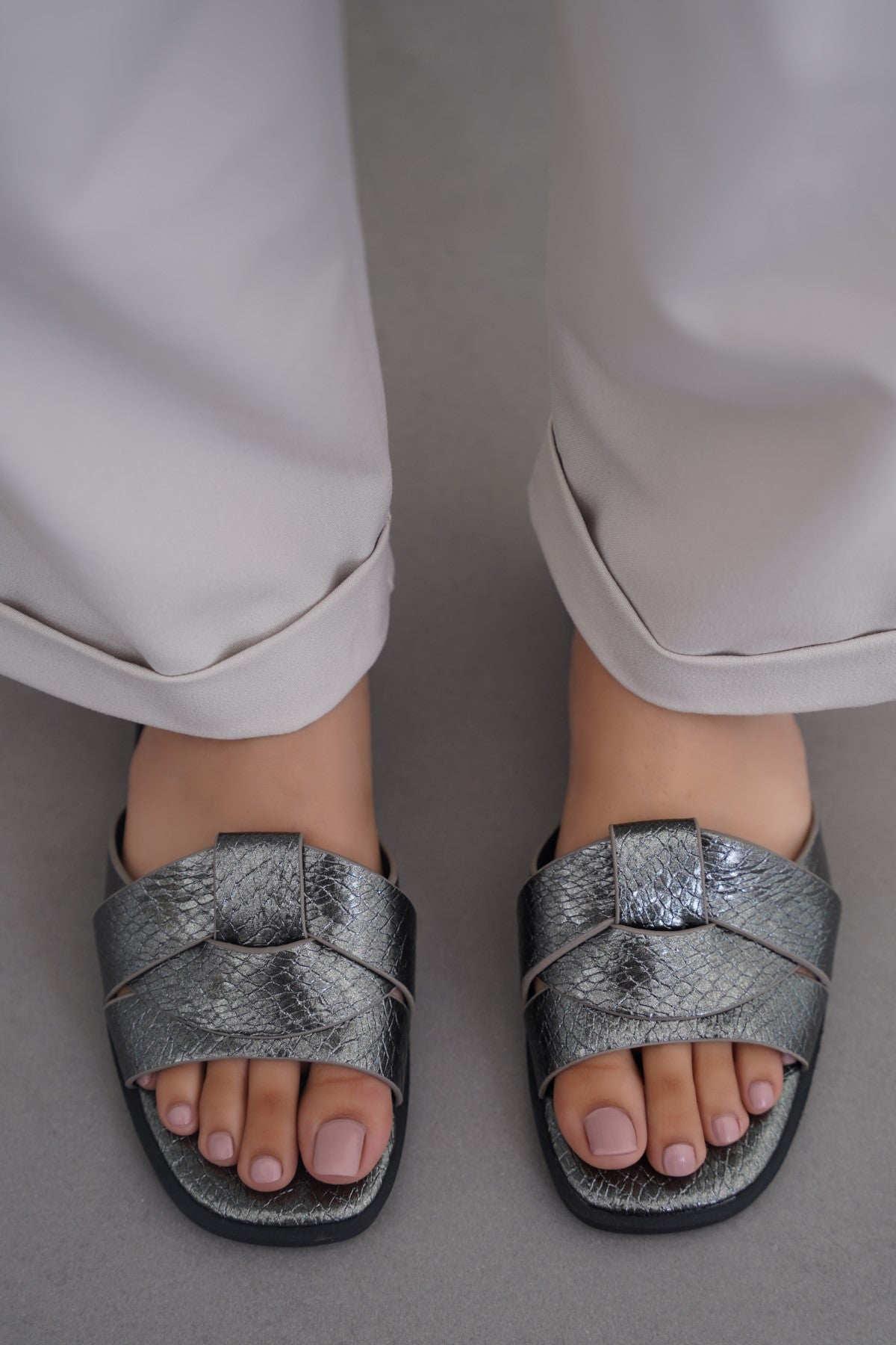 Comfortable textured slides with soft insole and anti-slip outsole.