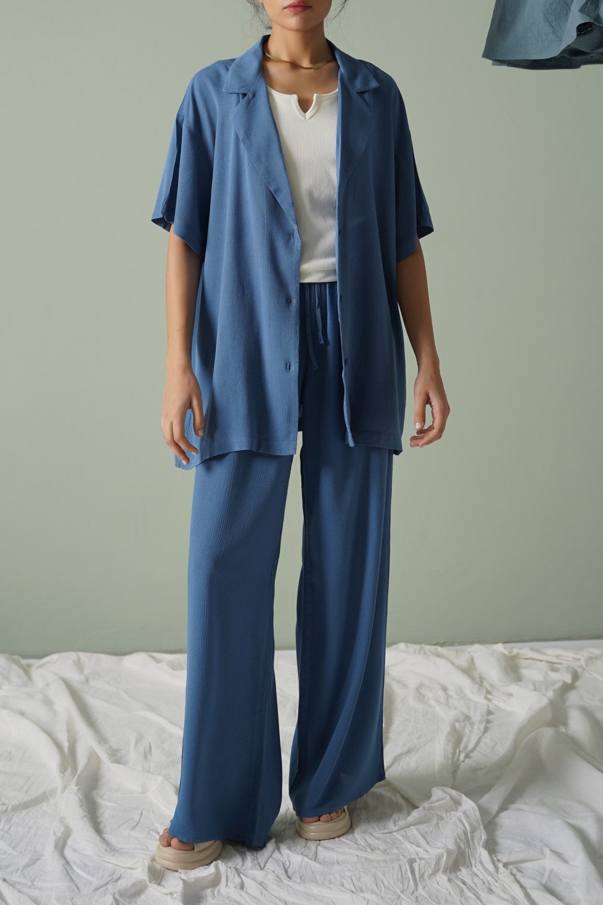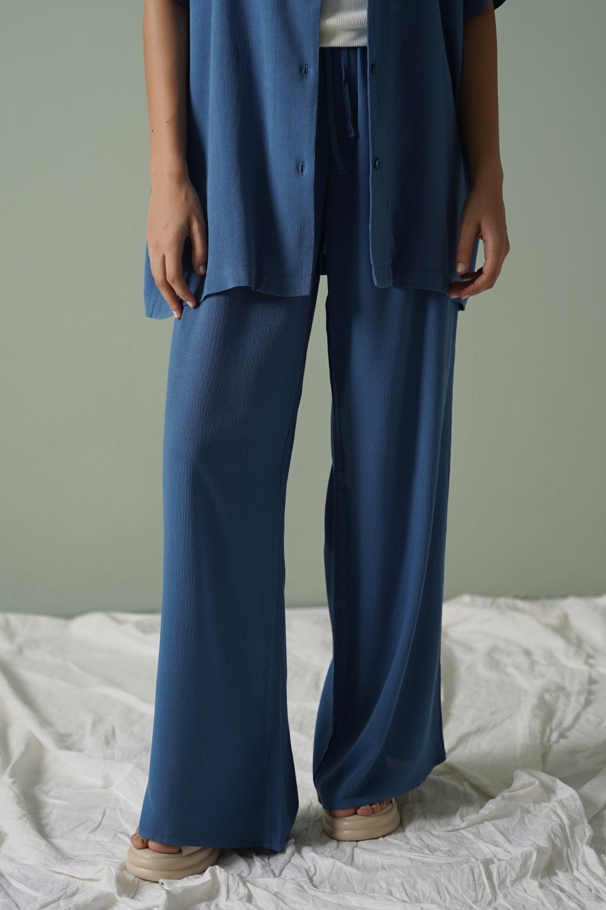 TEAL LONG DRAWSTRING TROUSERS