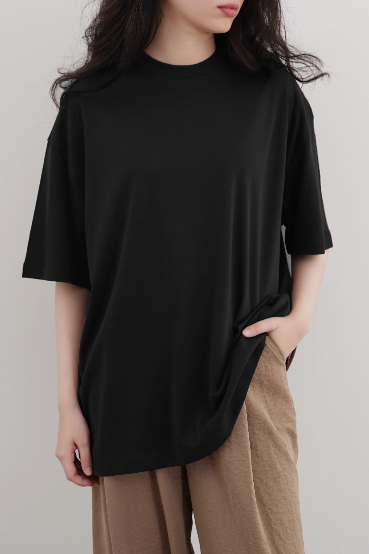 Design details: This lyocell-cotton blend tee with a crew neck and elongated short sleeves serves comfort and breathability for summer.