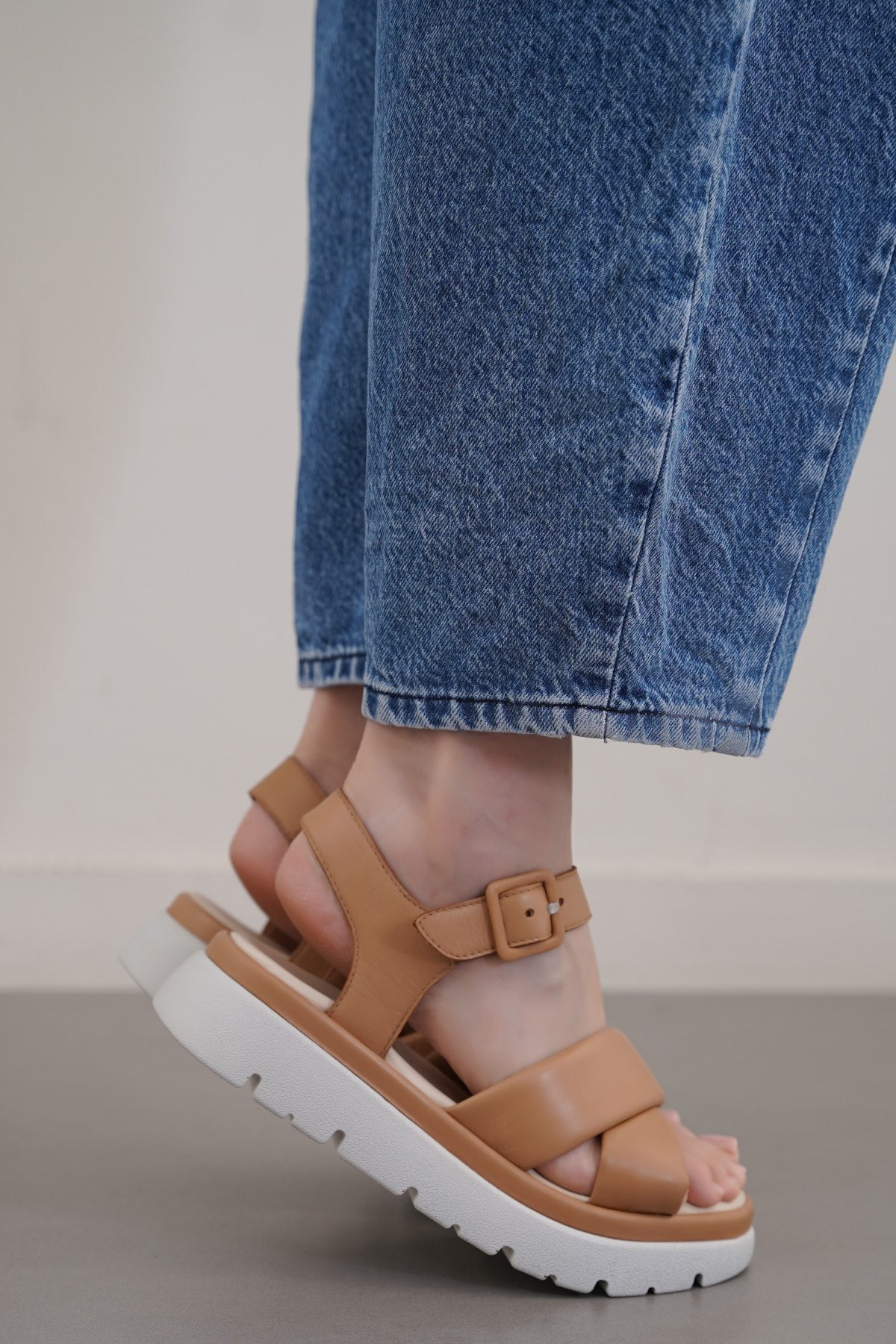 Genuine Leather marshmallow soft mama sandals with memory foam insole and buckle strap for easy size adjustment.
