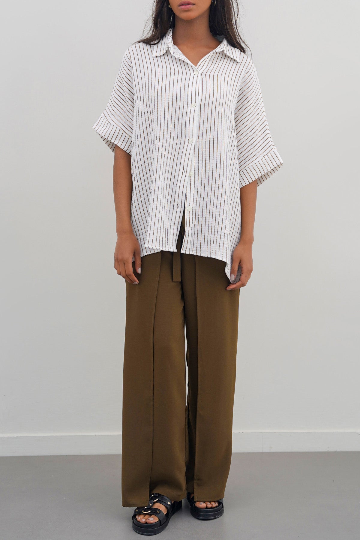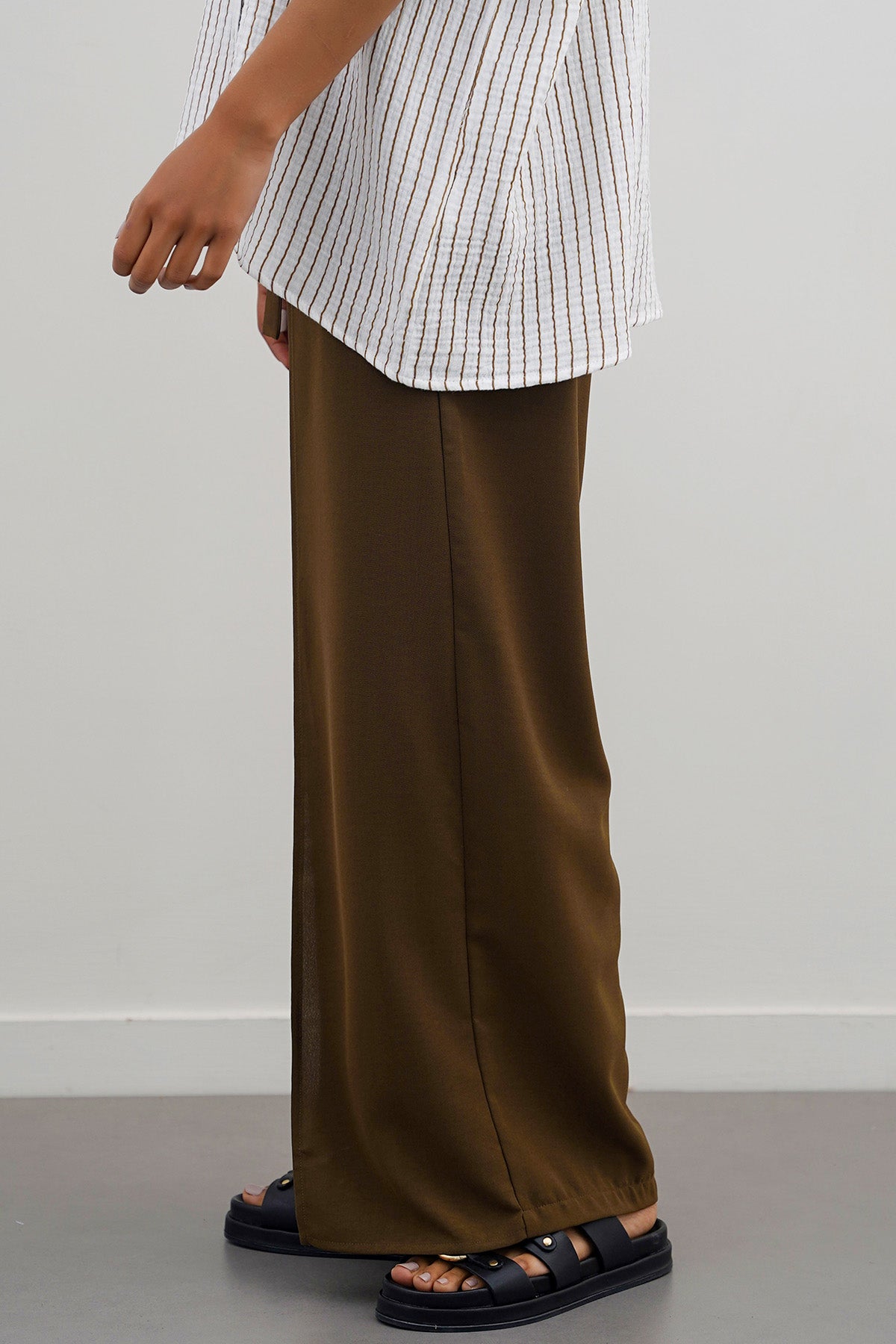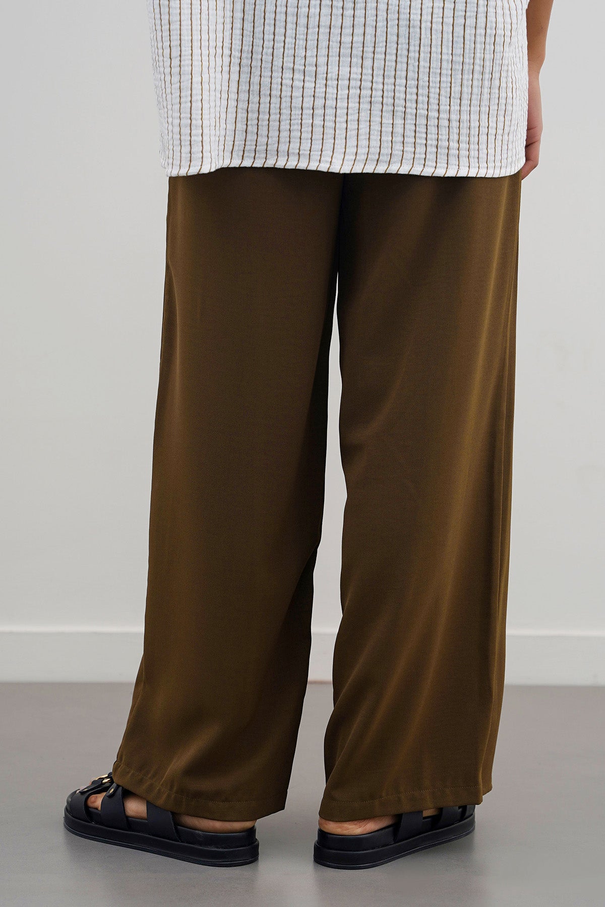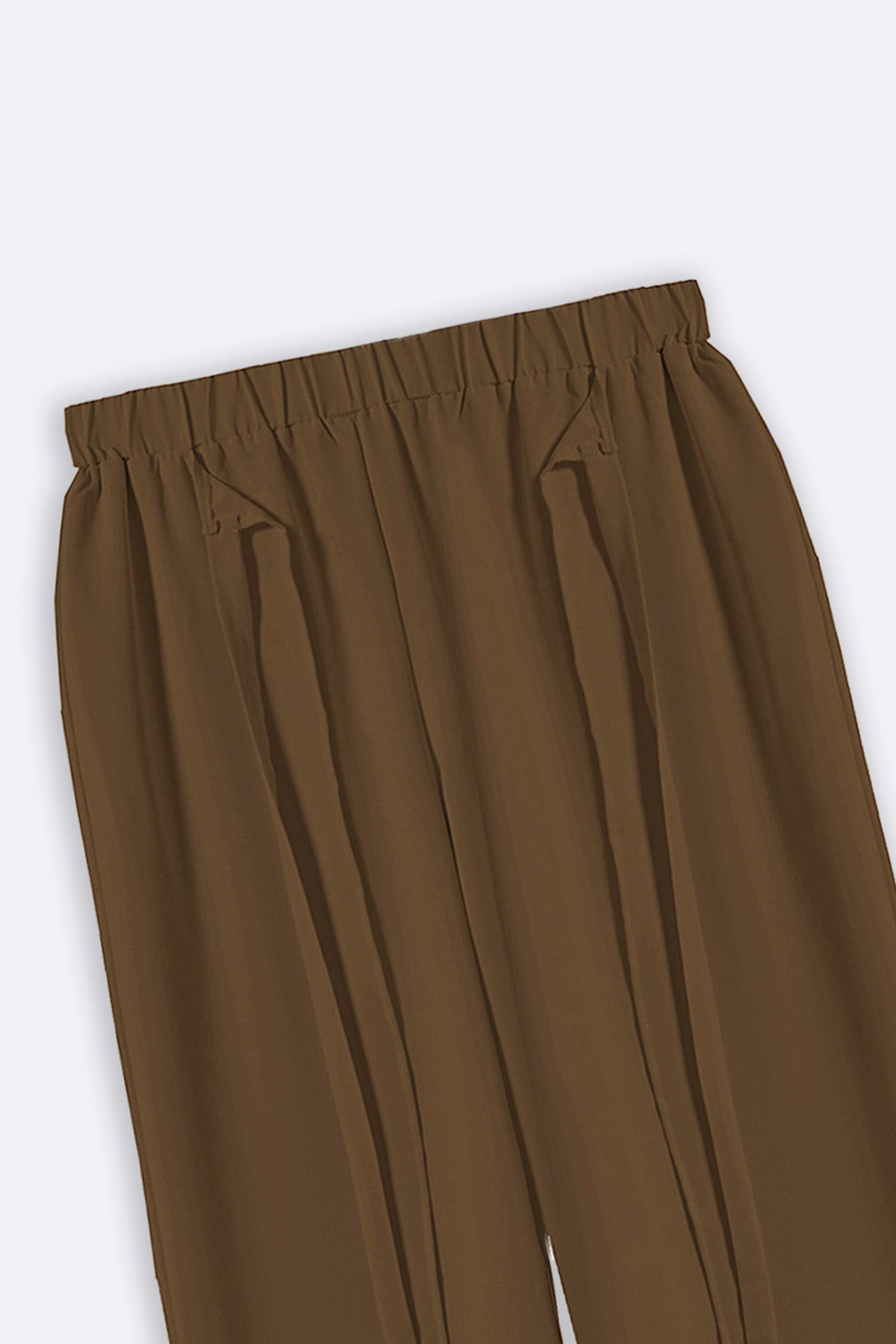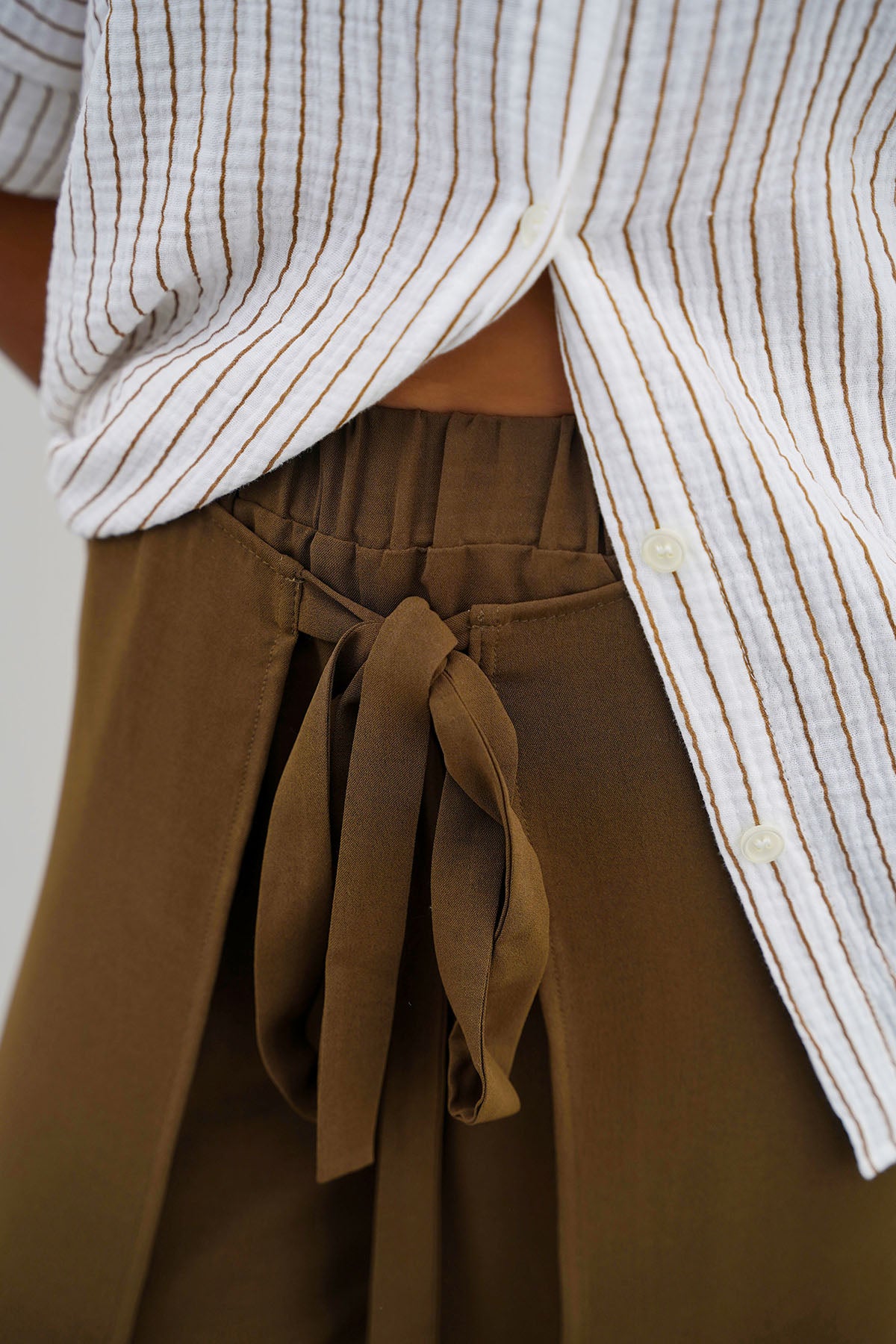Design details: Wide leg tie-around pants with an all around elasticated waistband.