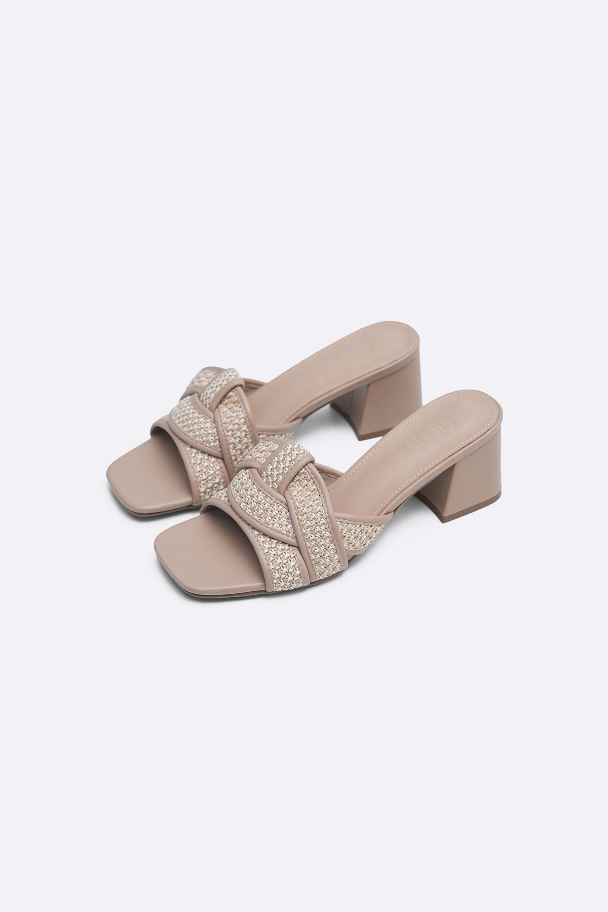BEIGE WEAVE BLOCK HEELS