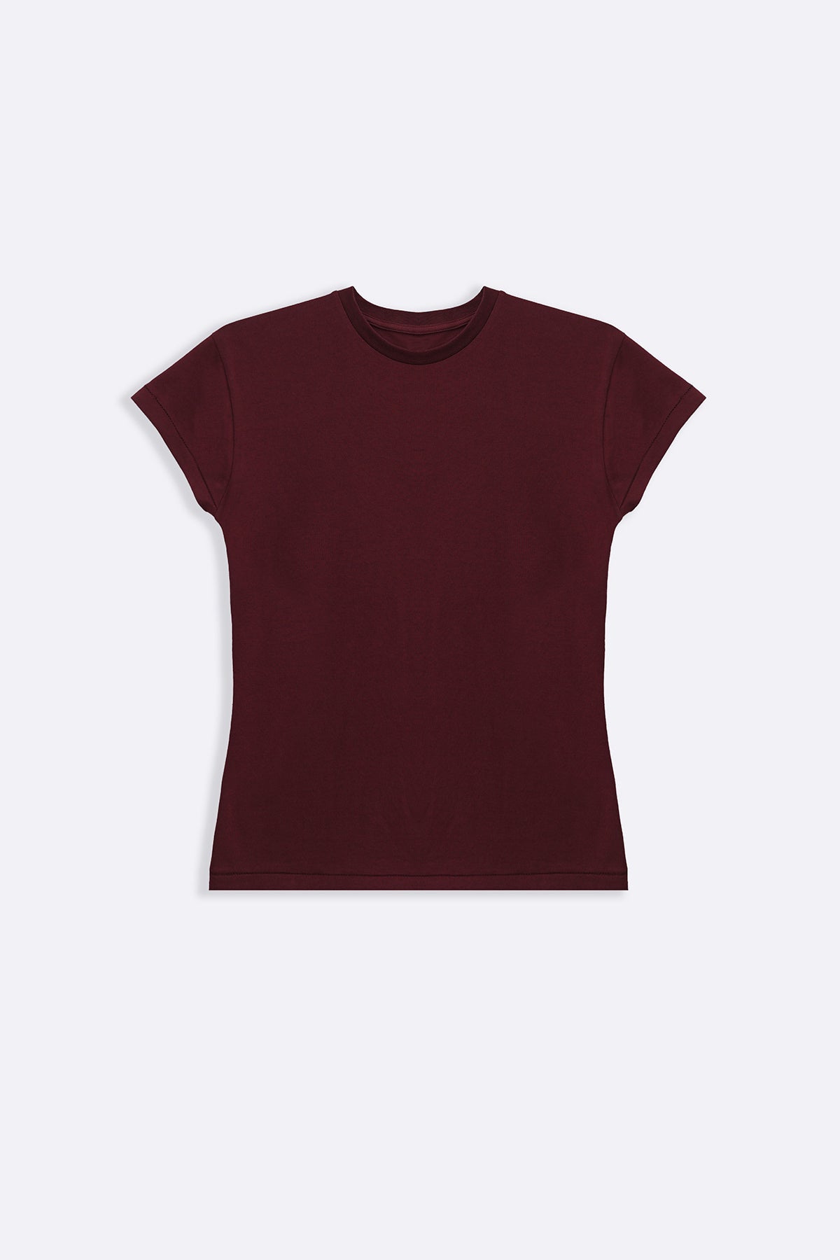 Design details: Crew neck tee with short sleeves and loose stitch details on hem and cuff.