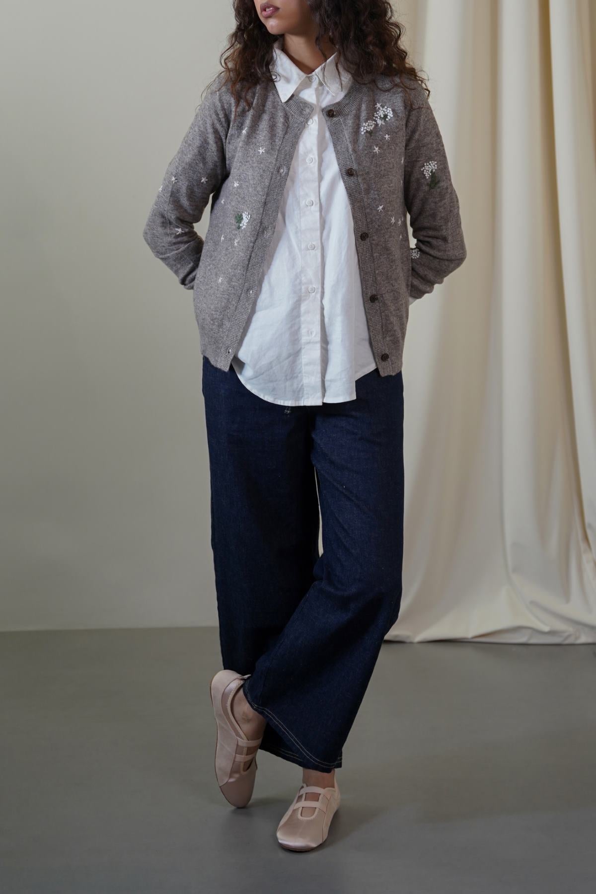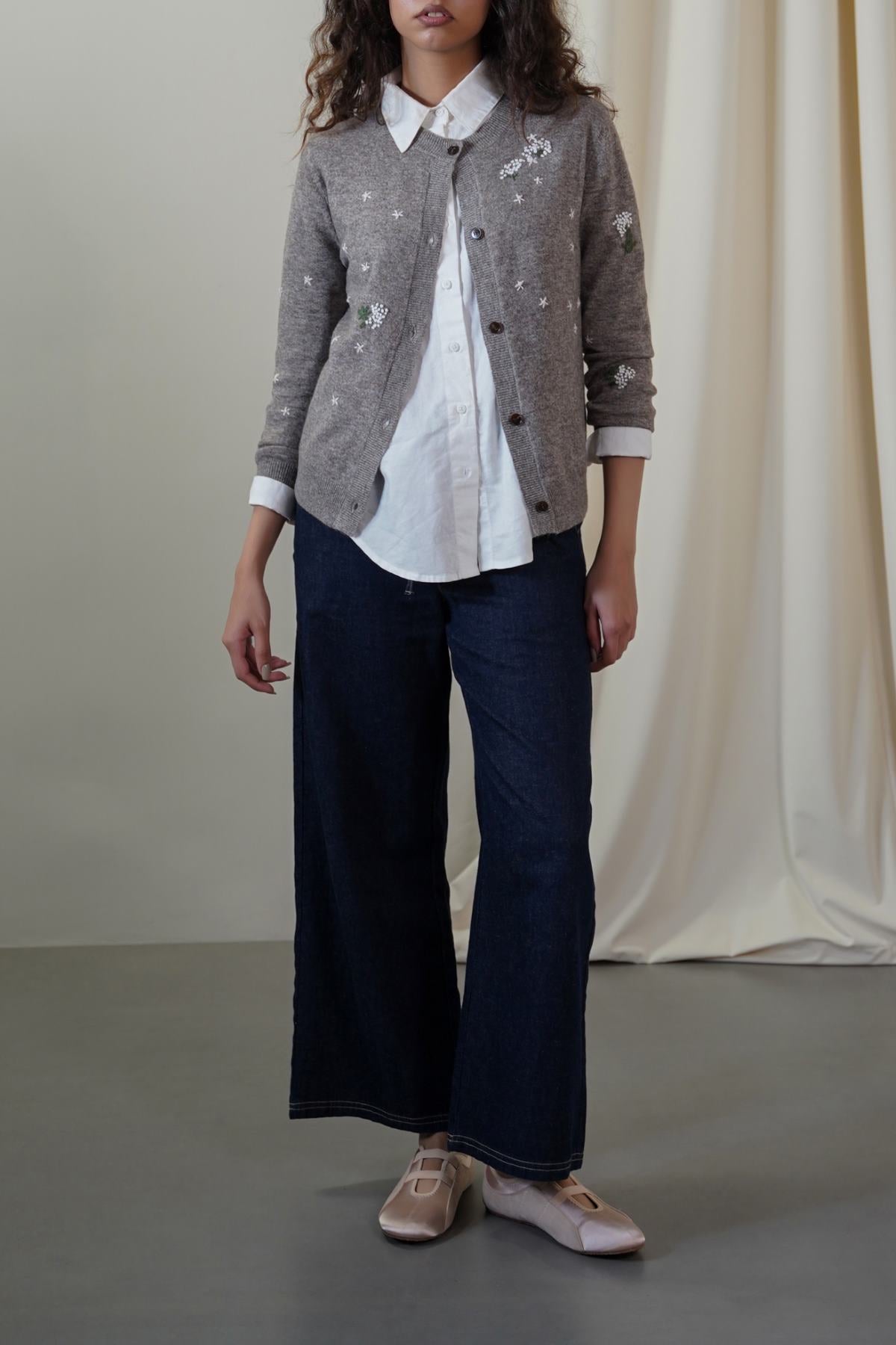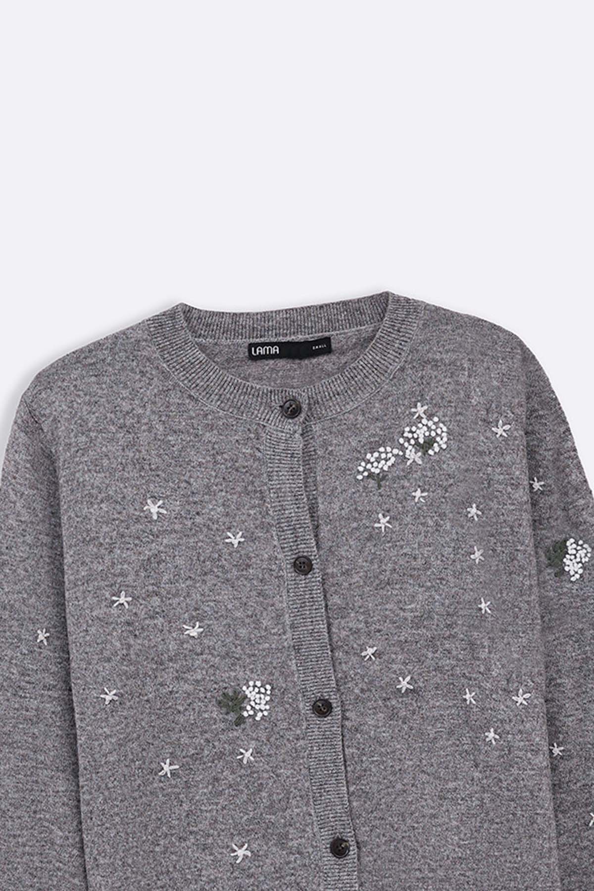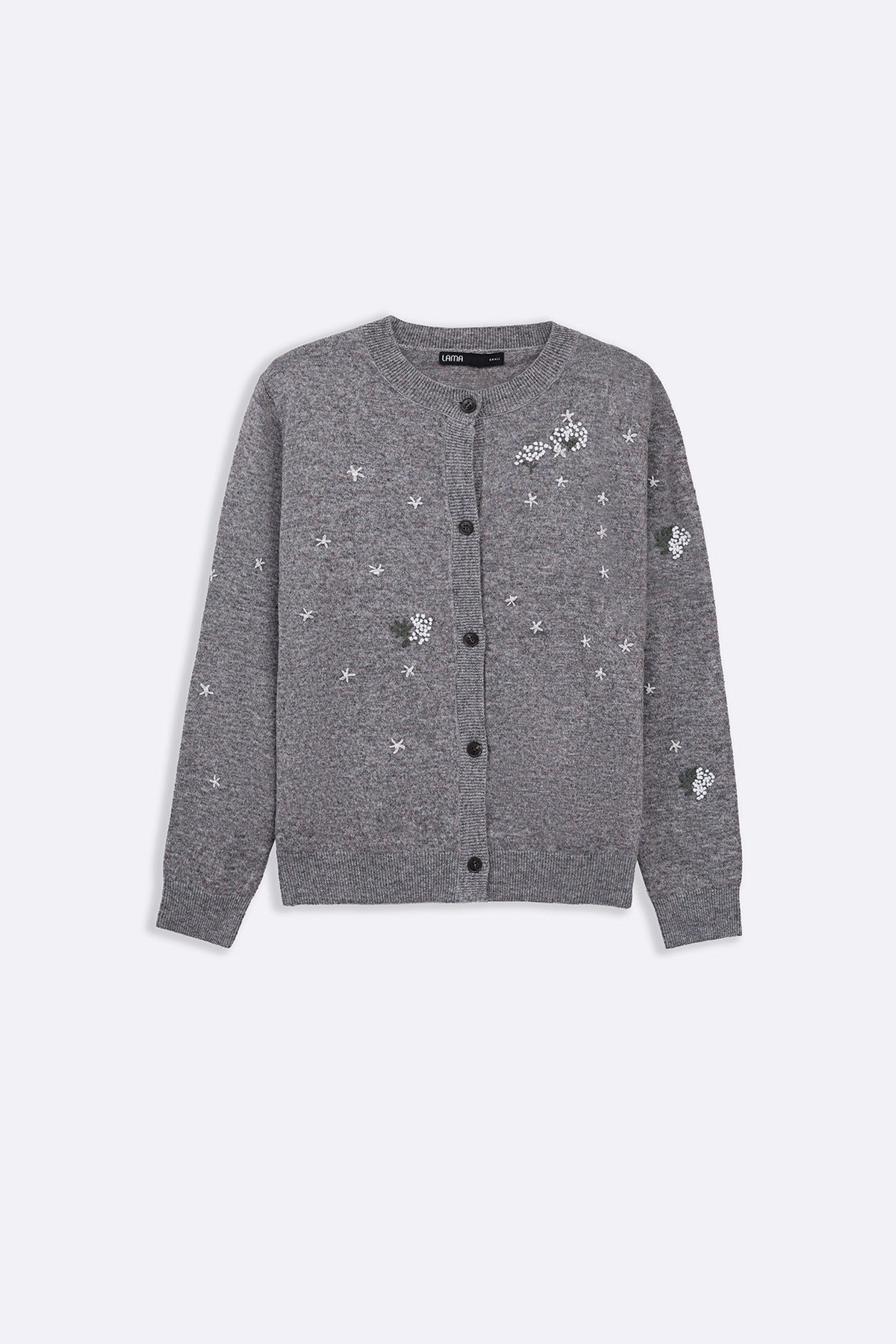 Design details: Floral embroidered crew neck cardigan with front button fastening along with long sleeves and rib details.