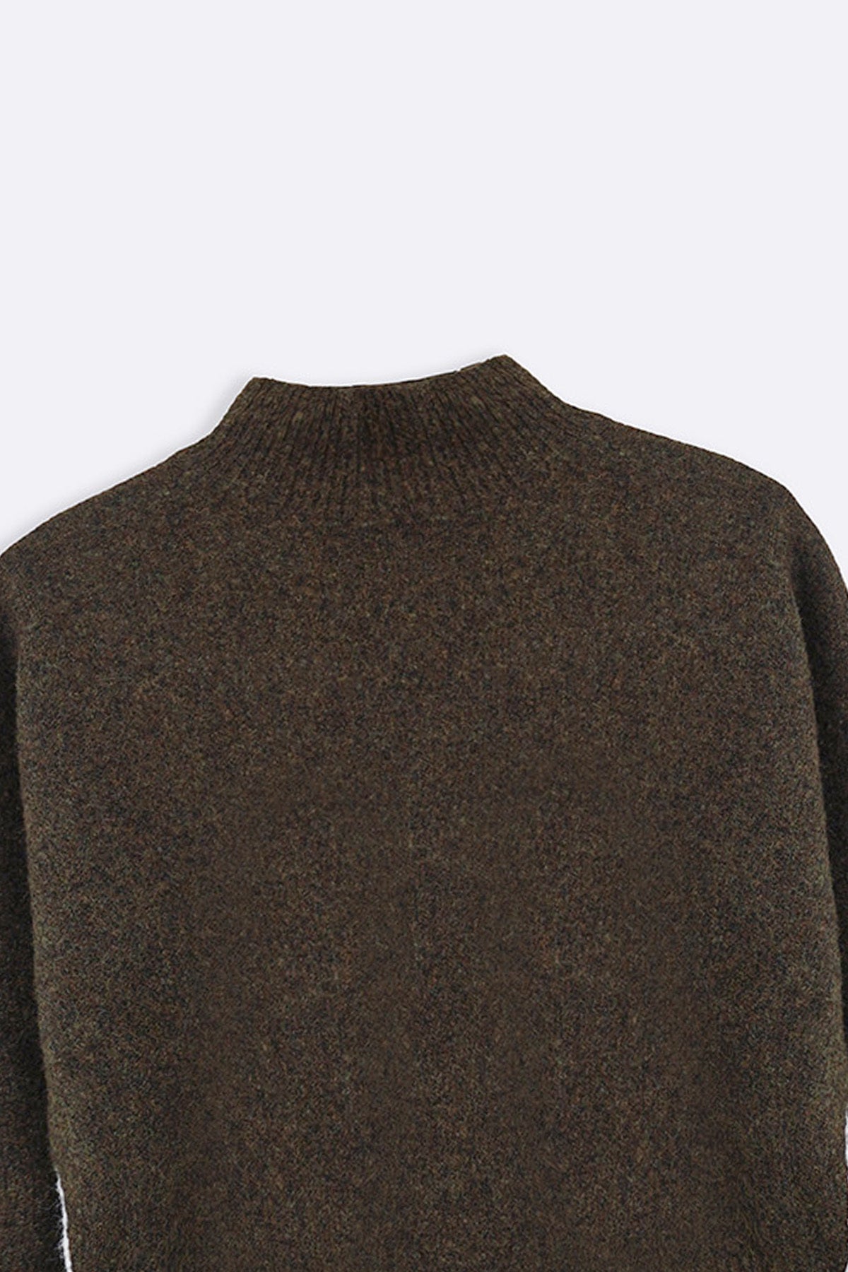 Design details: Mock neck sweater with stripes on the seam, along with side vents and long sleeves.