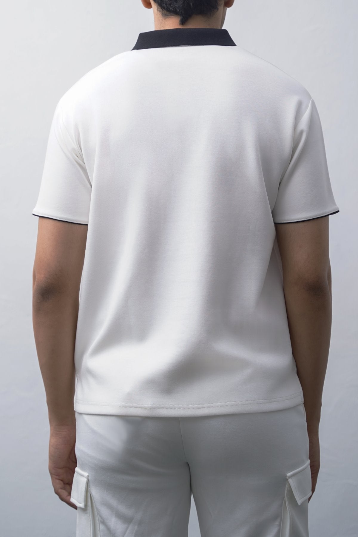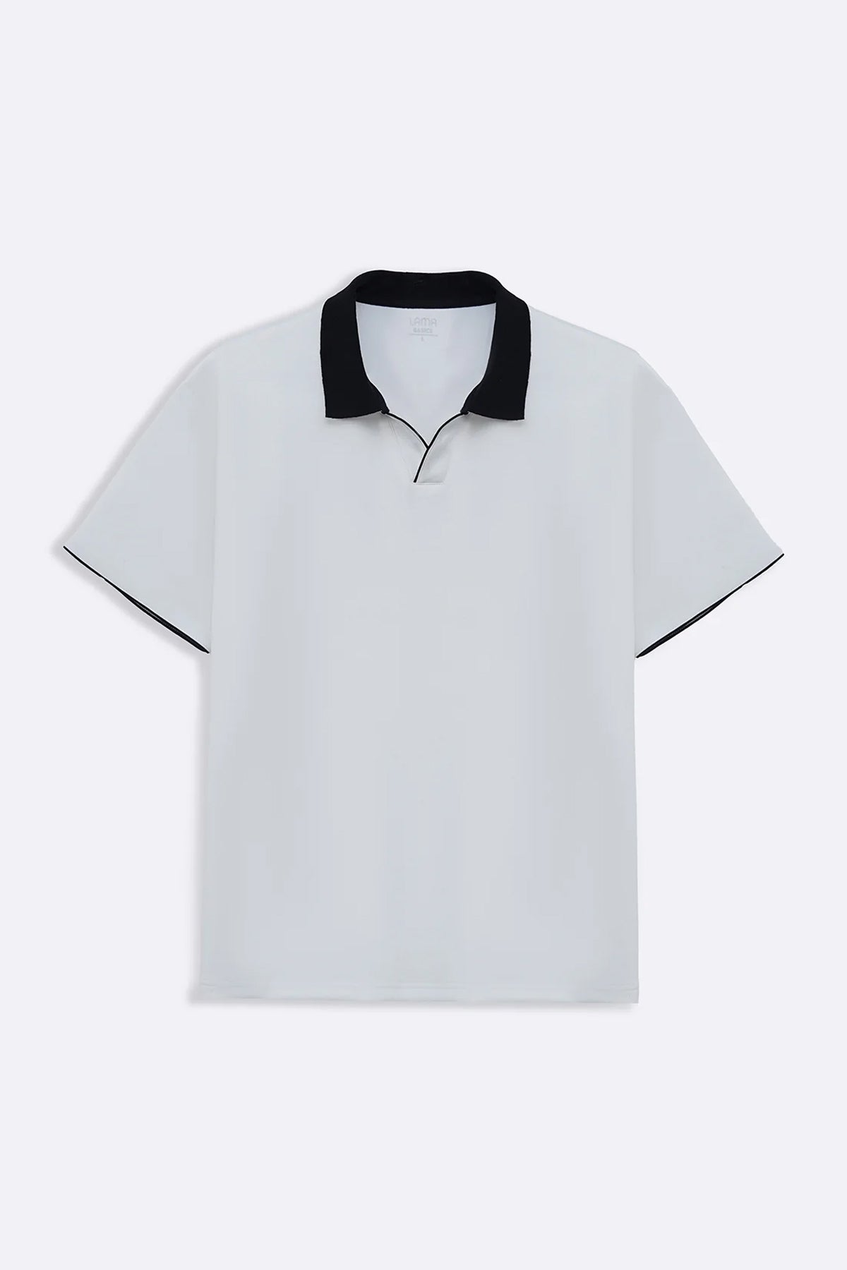 Design details: Basic polo shirt with contrast collar and sleeve edge.