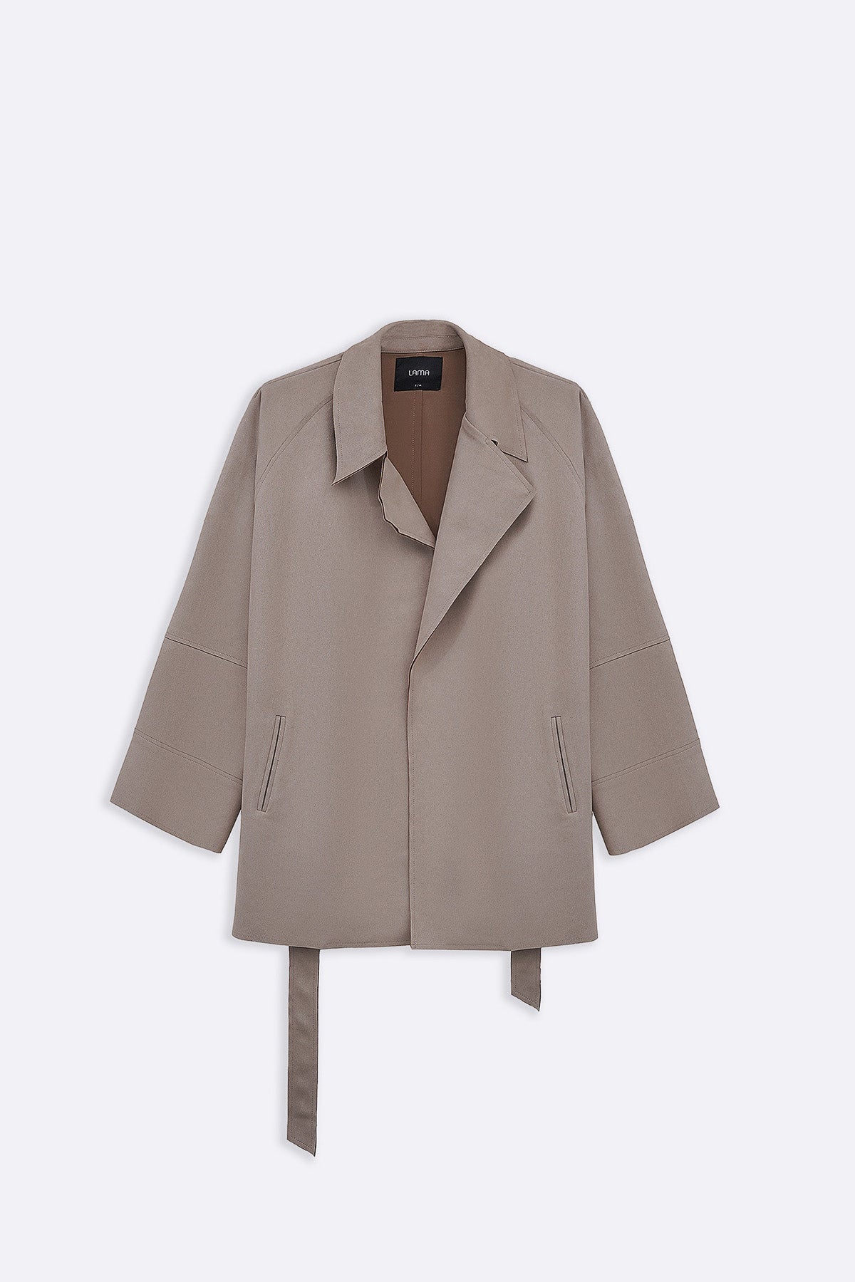 Design details: Mid length trench coat in suede with a lapel collar and front welt pockets. It comes with a matching belt to tie at waist. Stretch: None