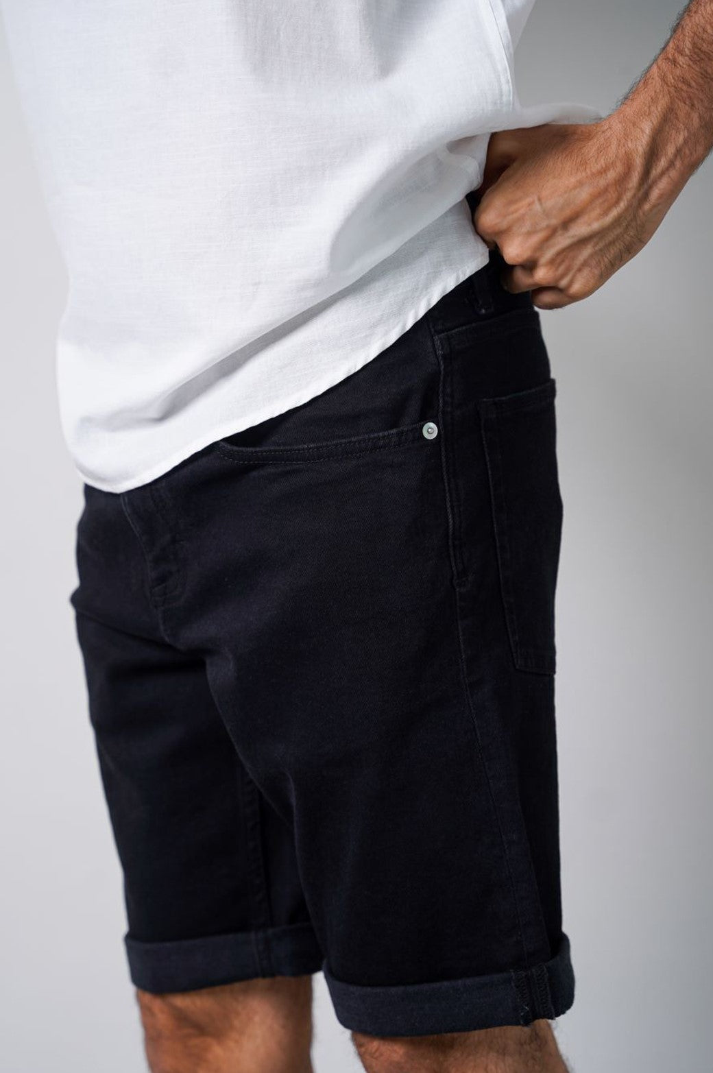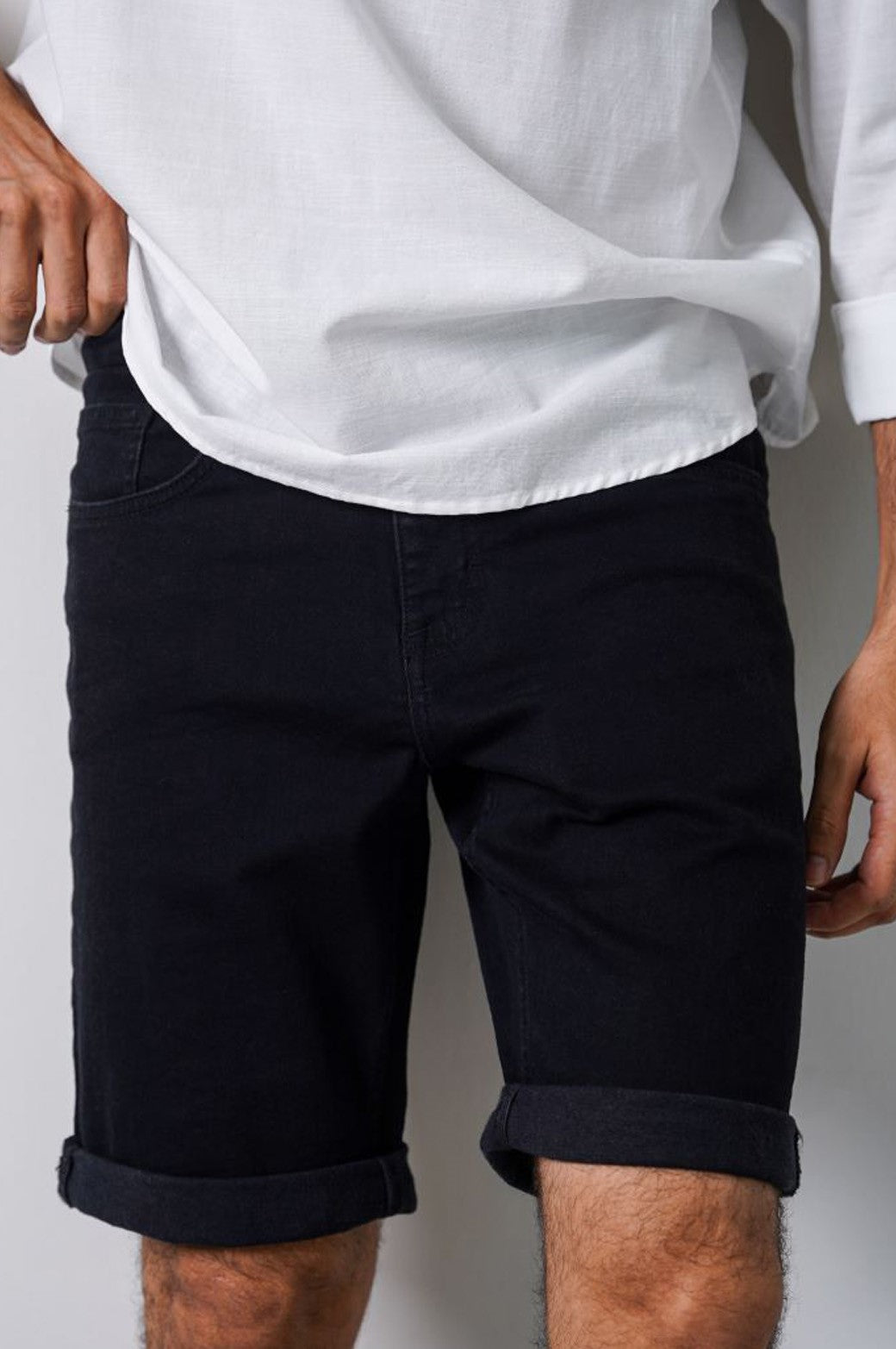 BLACK BASIC DENIM SHORTS