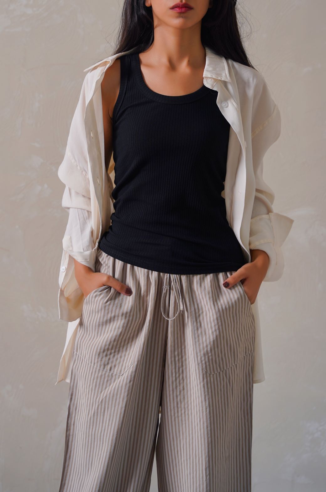 Fit type: Fitted Design details: Round neck top with wide straps Stretch: High Transparency: Not transparent Hand feel: Soft Lining: None Material: 95% Cotton, 5% Spandex Size: The model is 157.48 cm/5'2" and wears a size SMALL Occasion: Smart casual