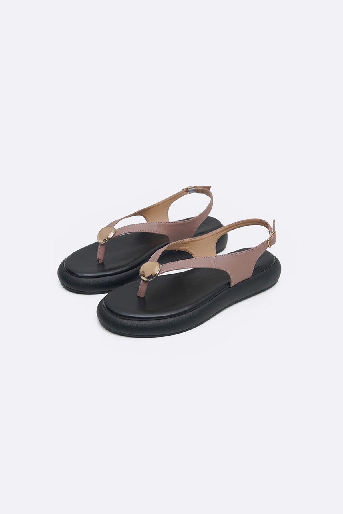 Super soft and lightweight platform sandals with a dull gold round buckle.