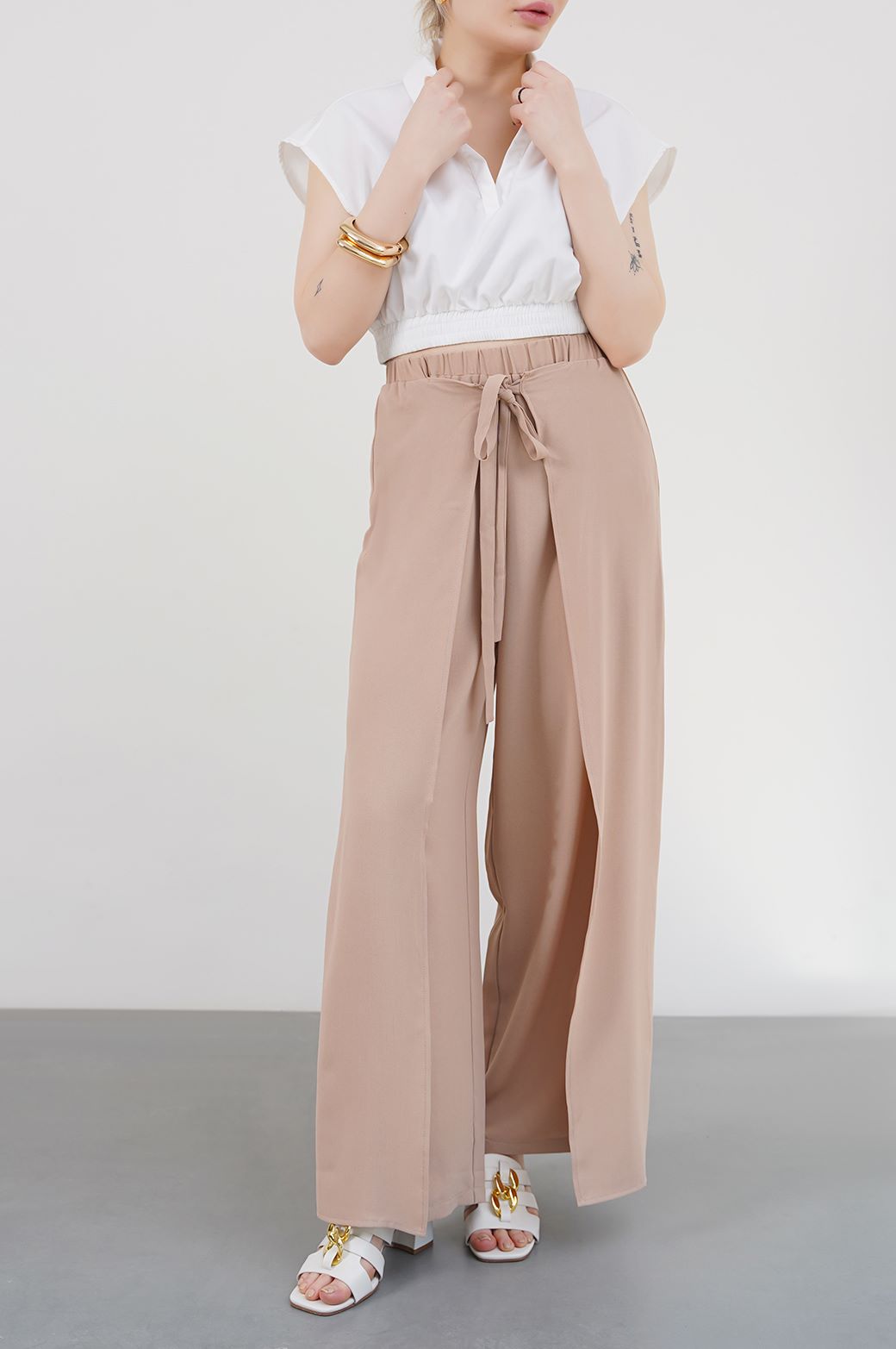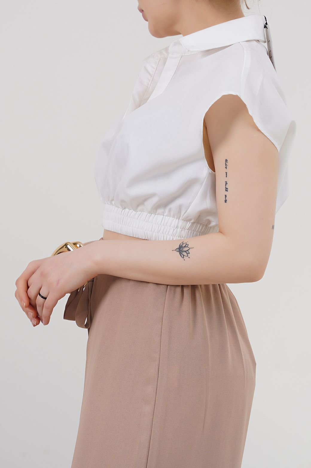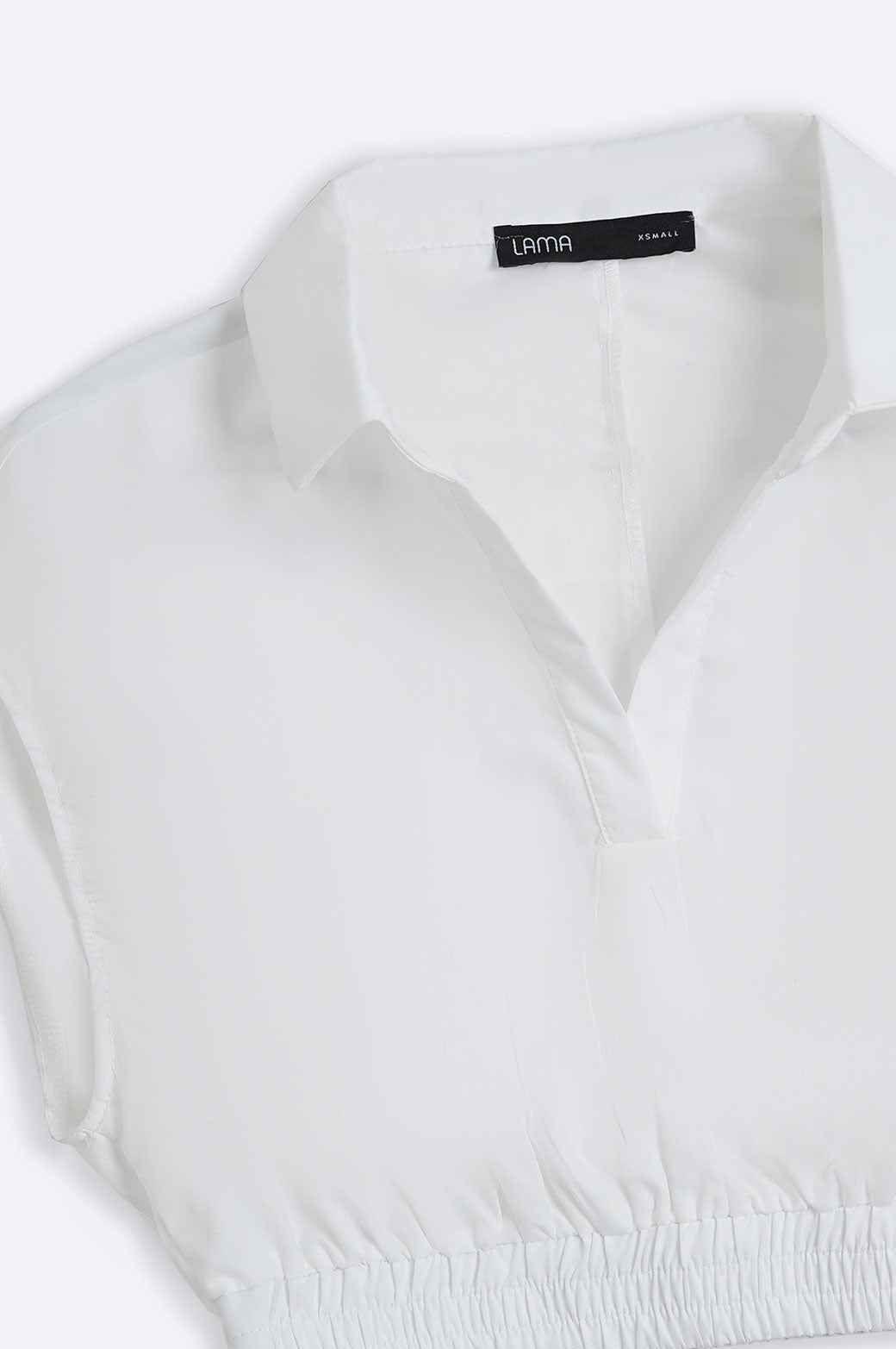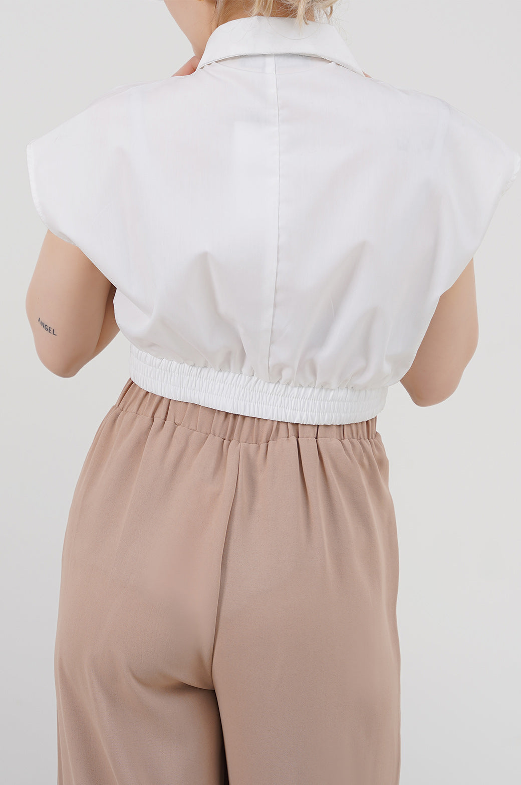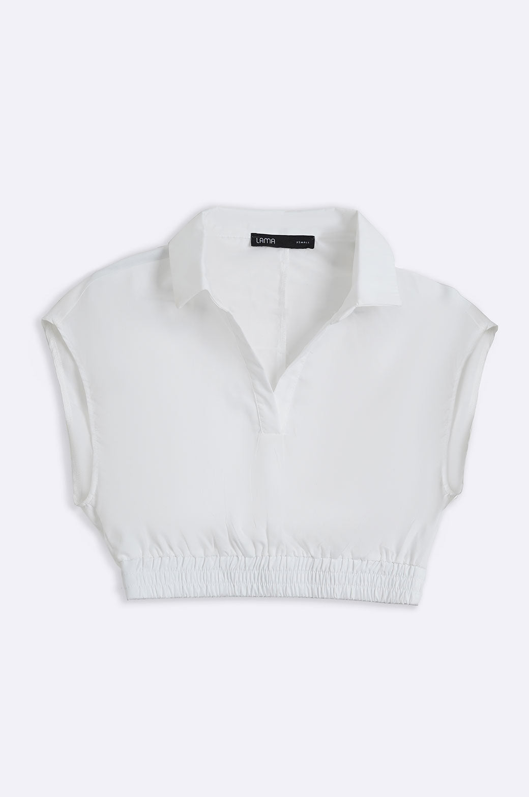 Fit type: Regular fit Design details: Elasticated hem for a fitted look, crop style Stretch: None Transparency: Medium in white color Hand feel: Soft Lining: None Material: 80% polyester, 20% cotton Size: The model is 162.56 cm/5'4" and wears a size SMALL Occasion: Daily casual