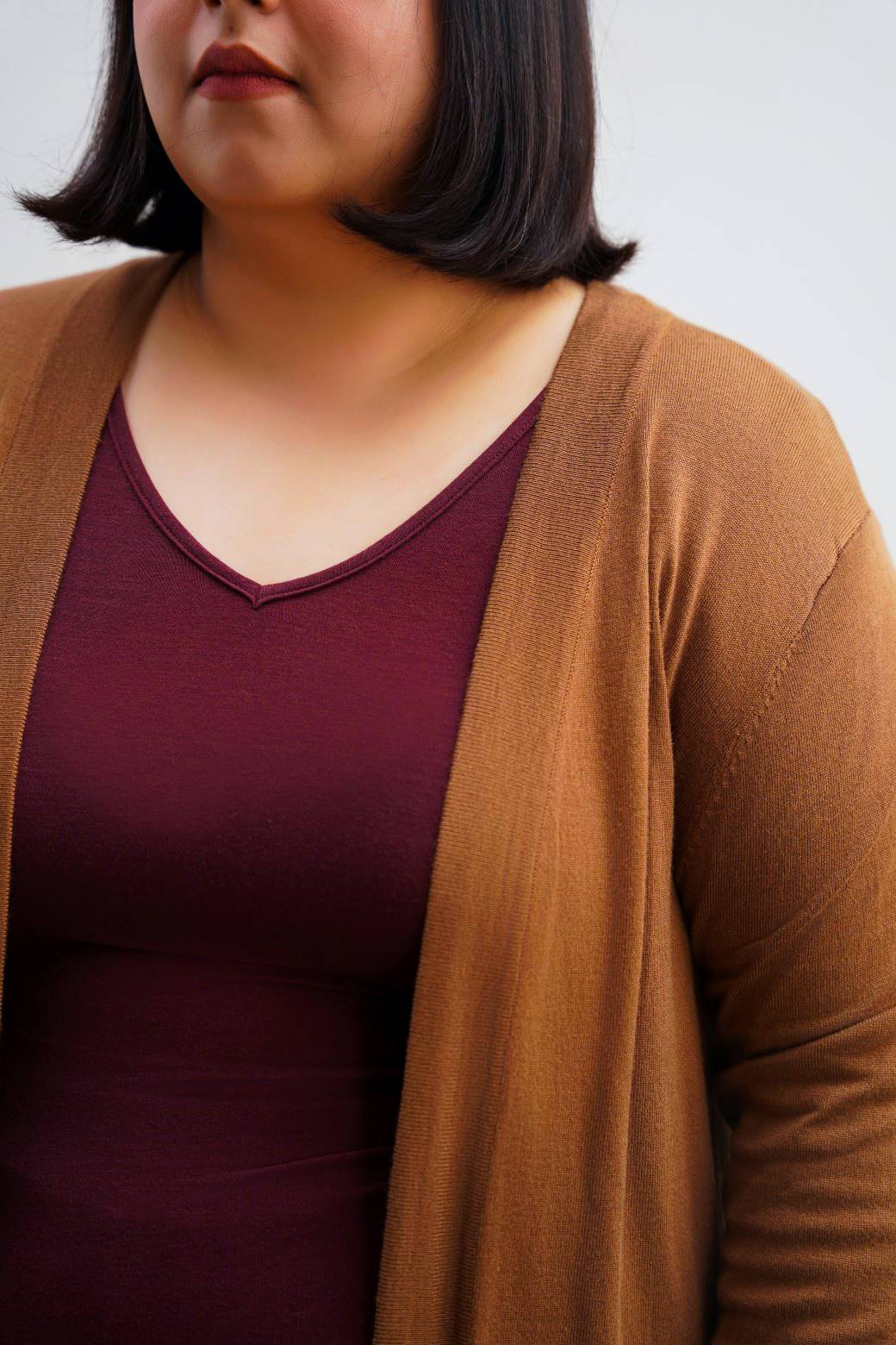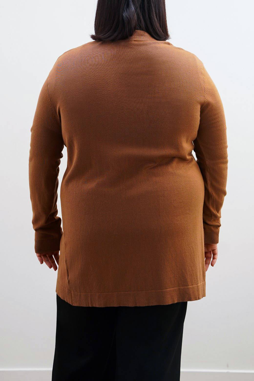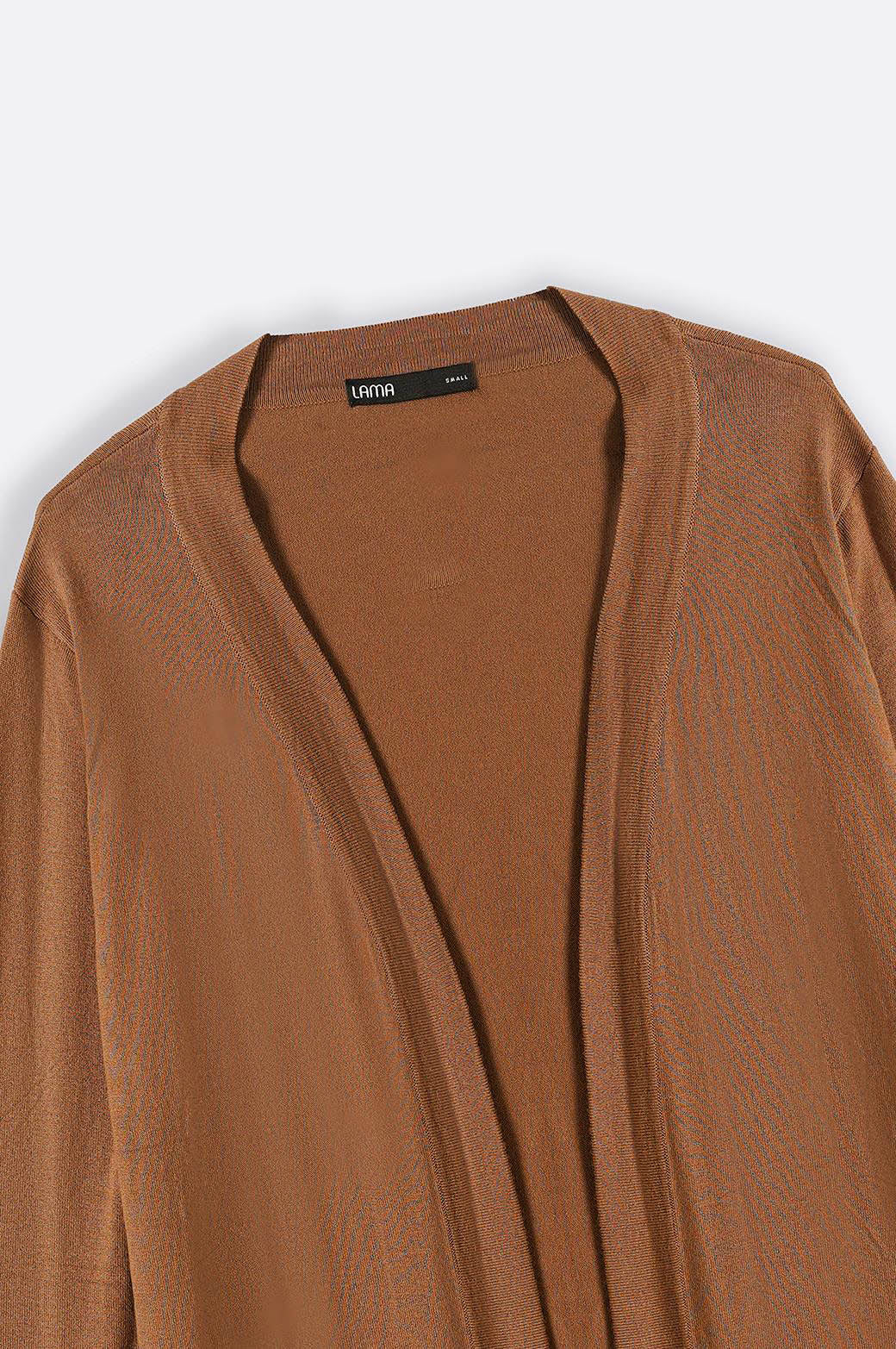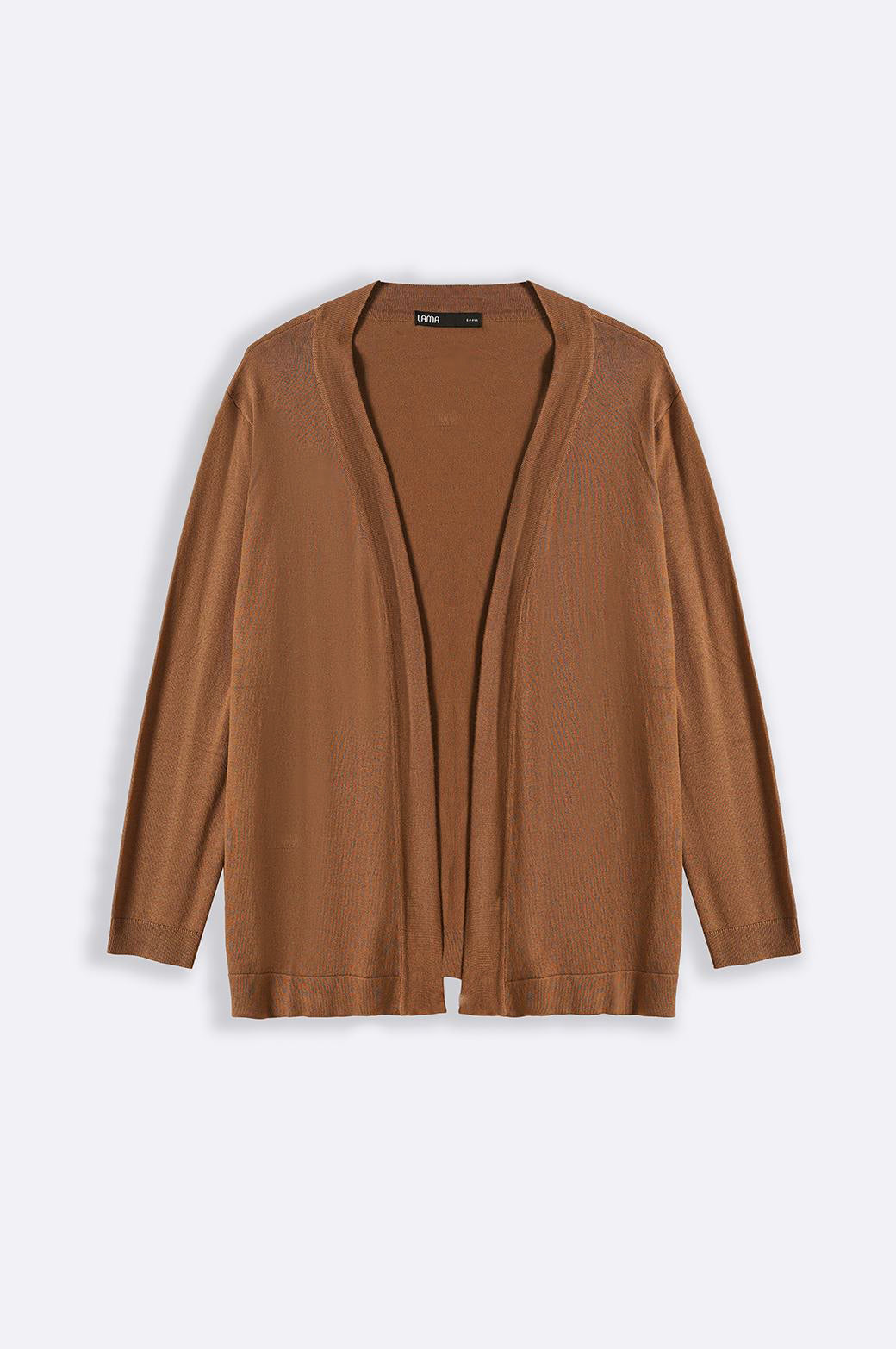 Design details: Short cardigan in soft, fine-knit fabric. Dropped shoulders, long sleeves, and ribbing at cuffs and hem