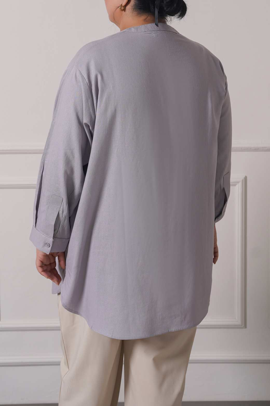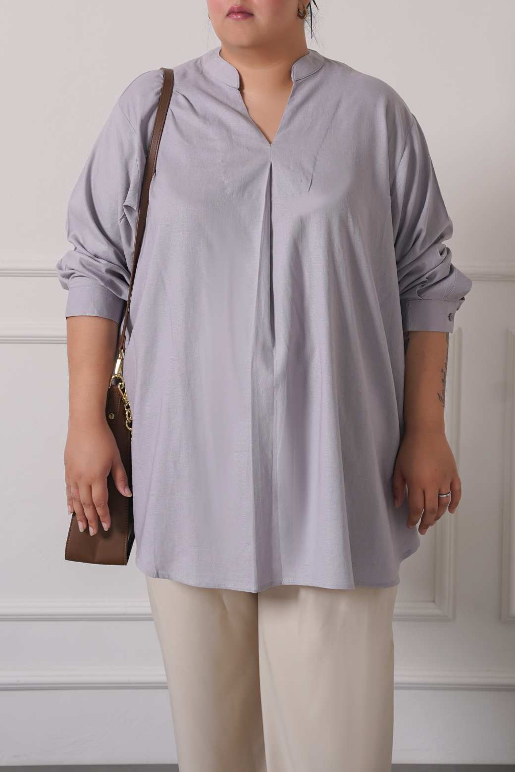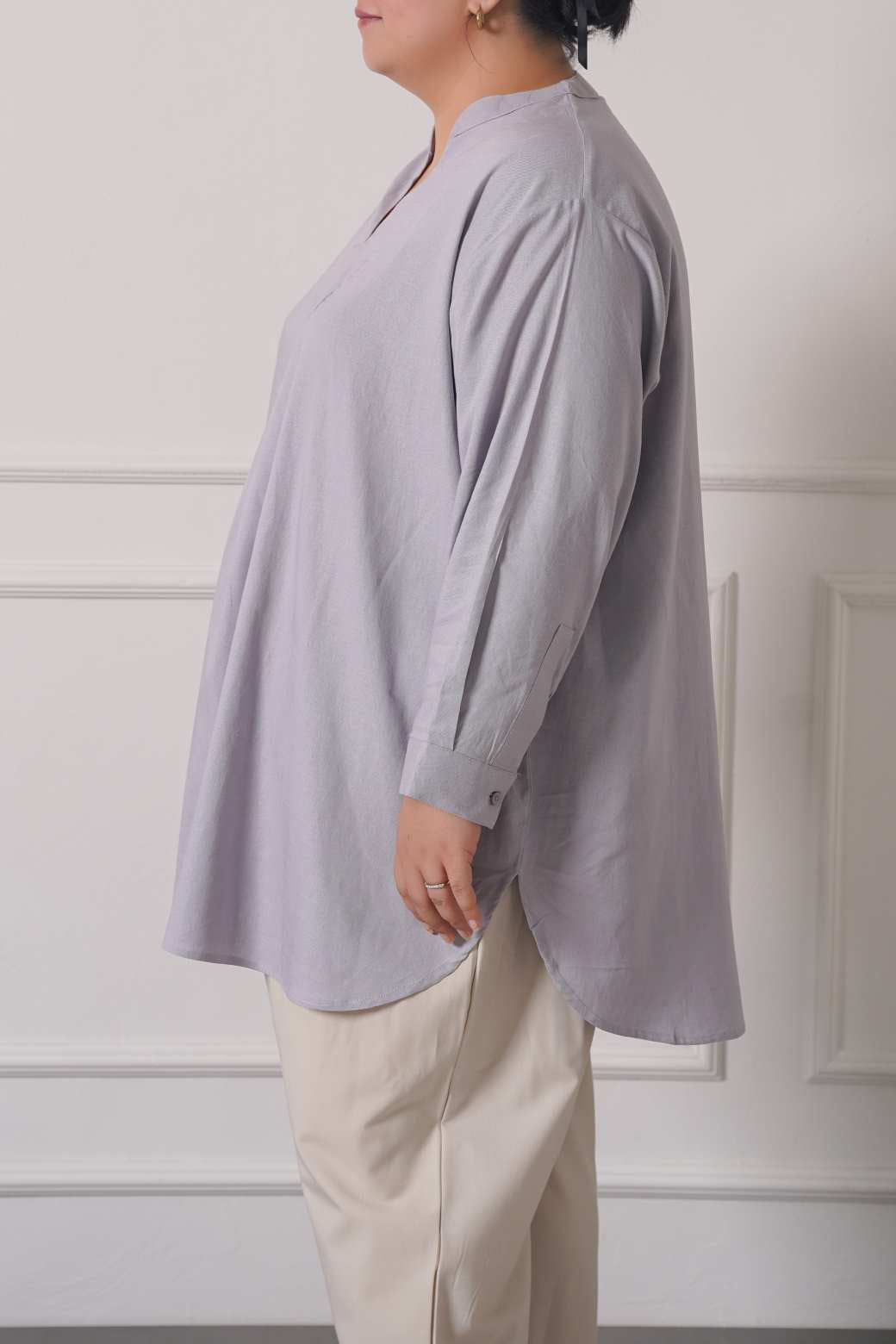 ICE BLUE CURVE LINEN PLEATED BLOUSE