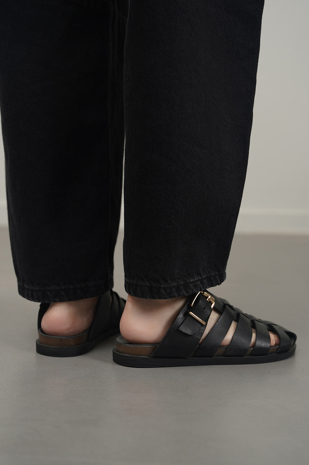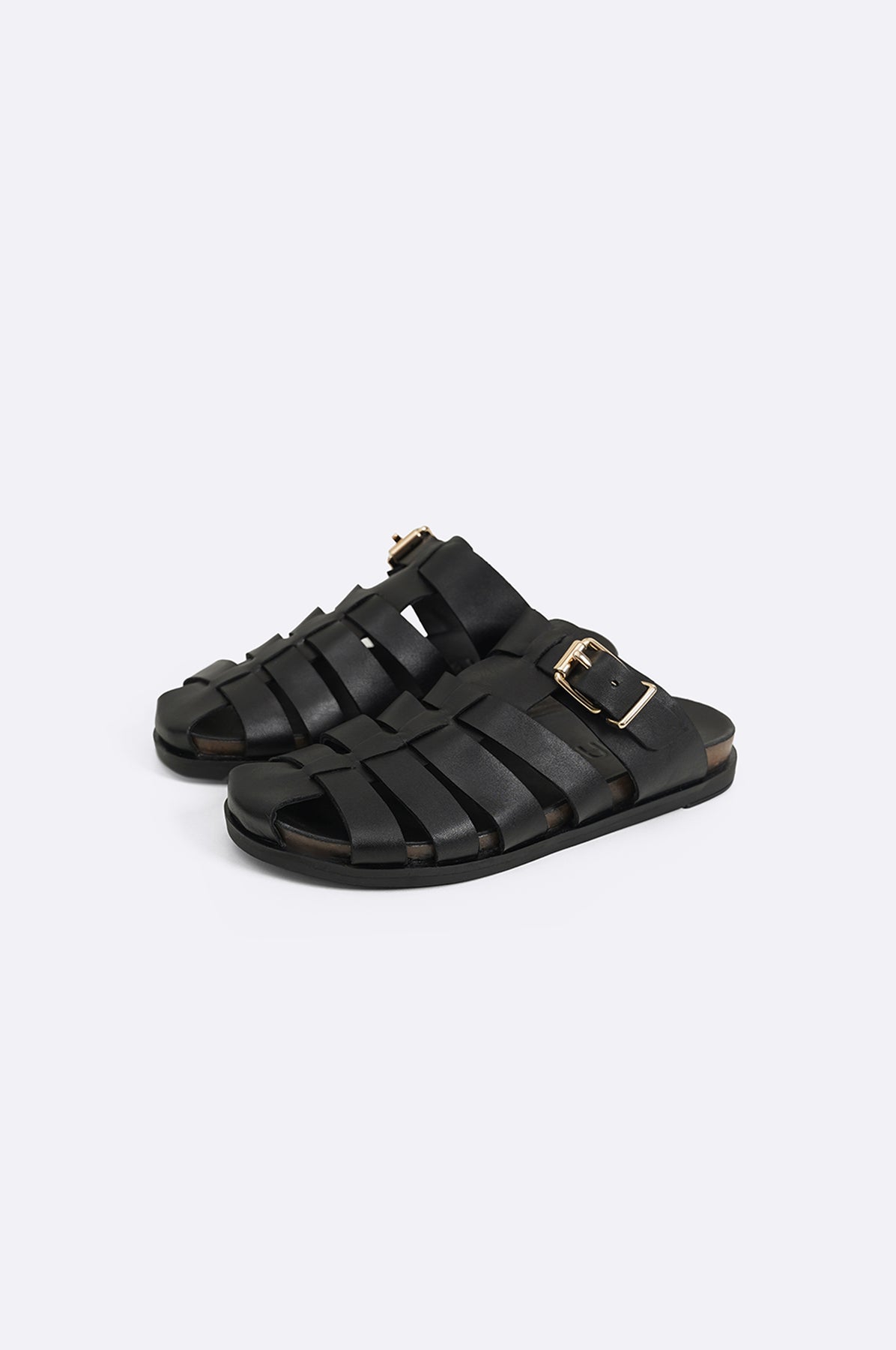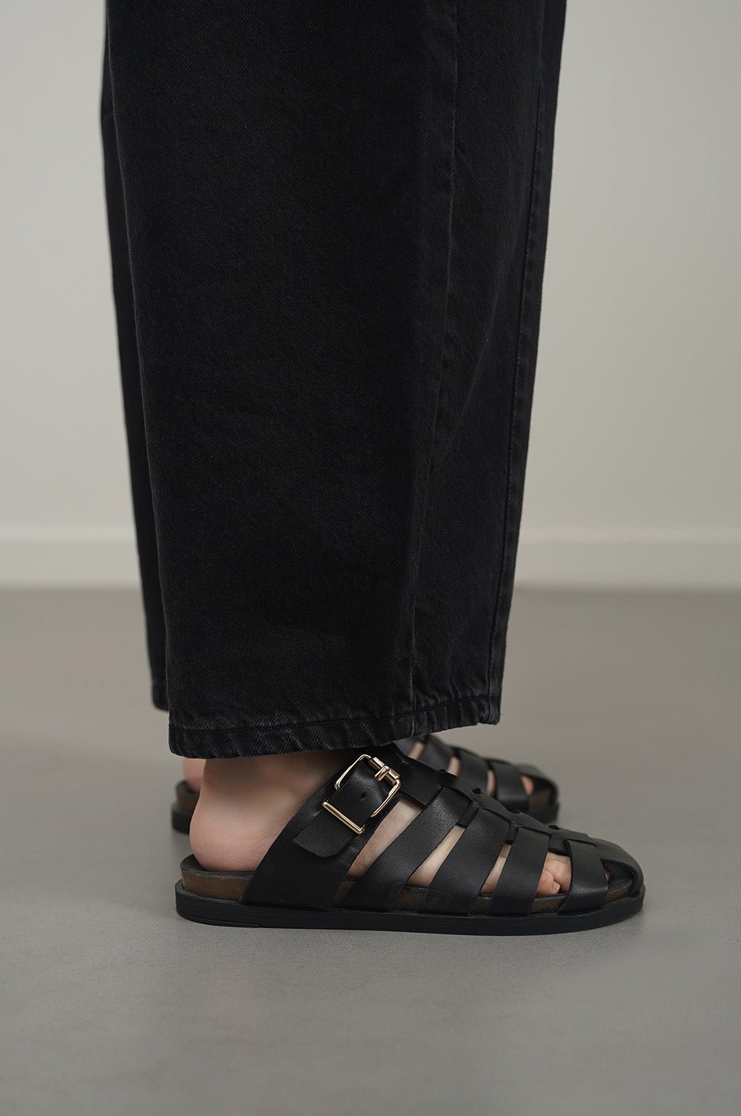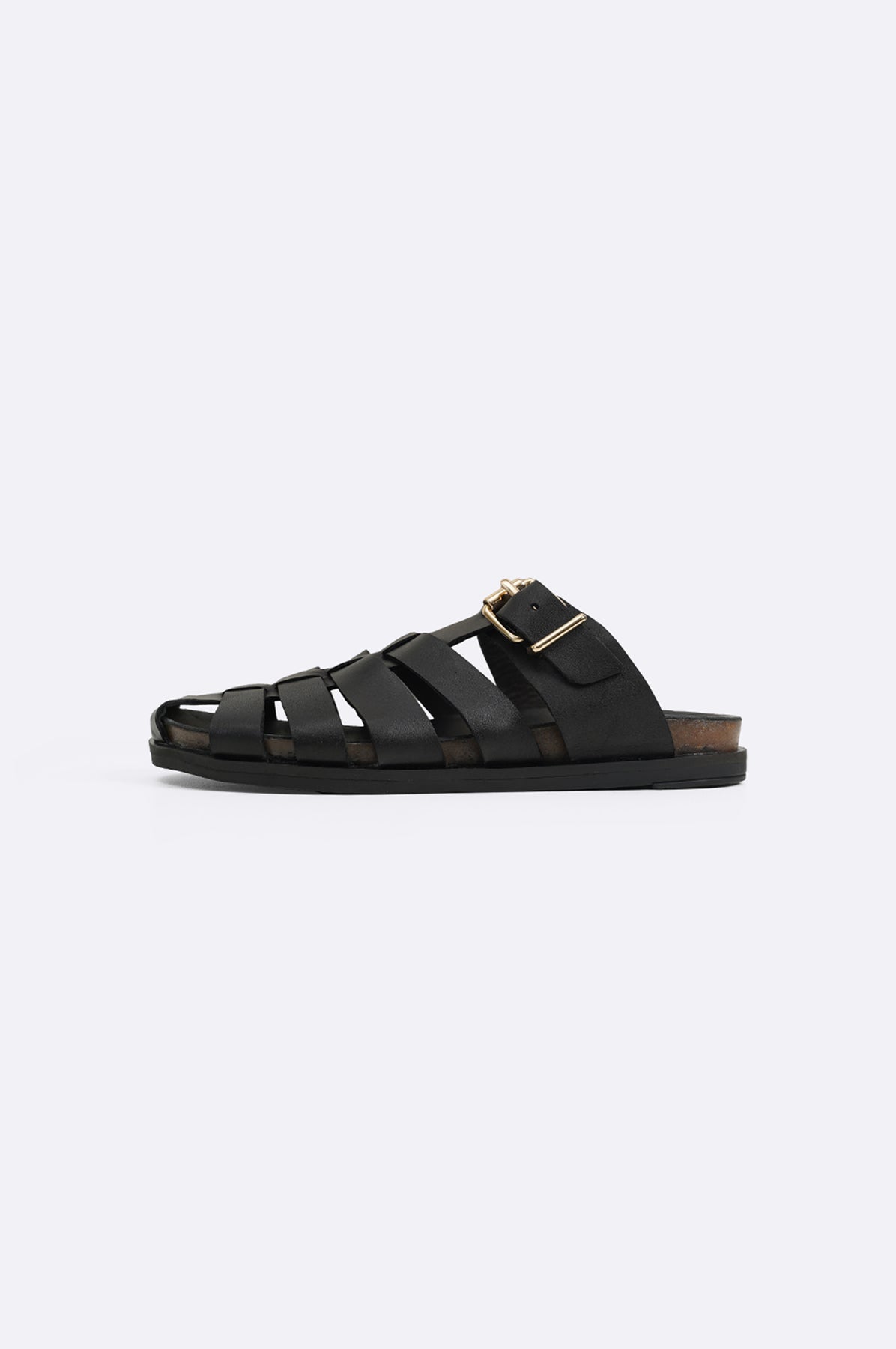 Design detail: Trending strappy mule with cork midsole and anti-slip outsole.
