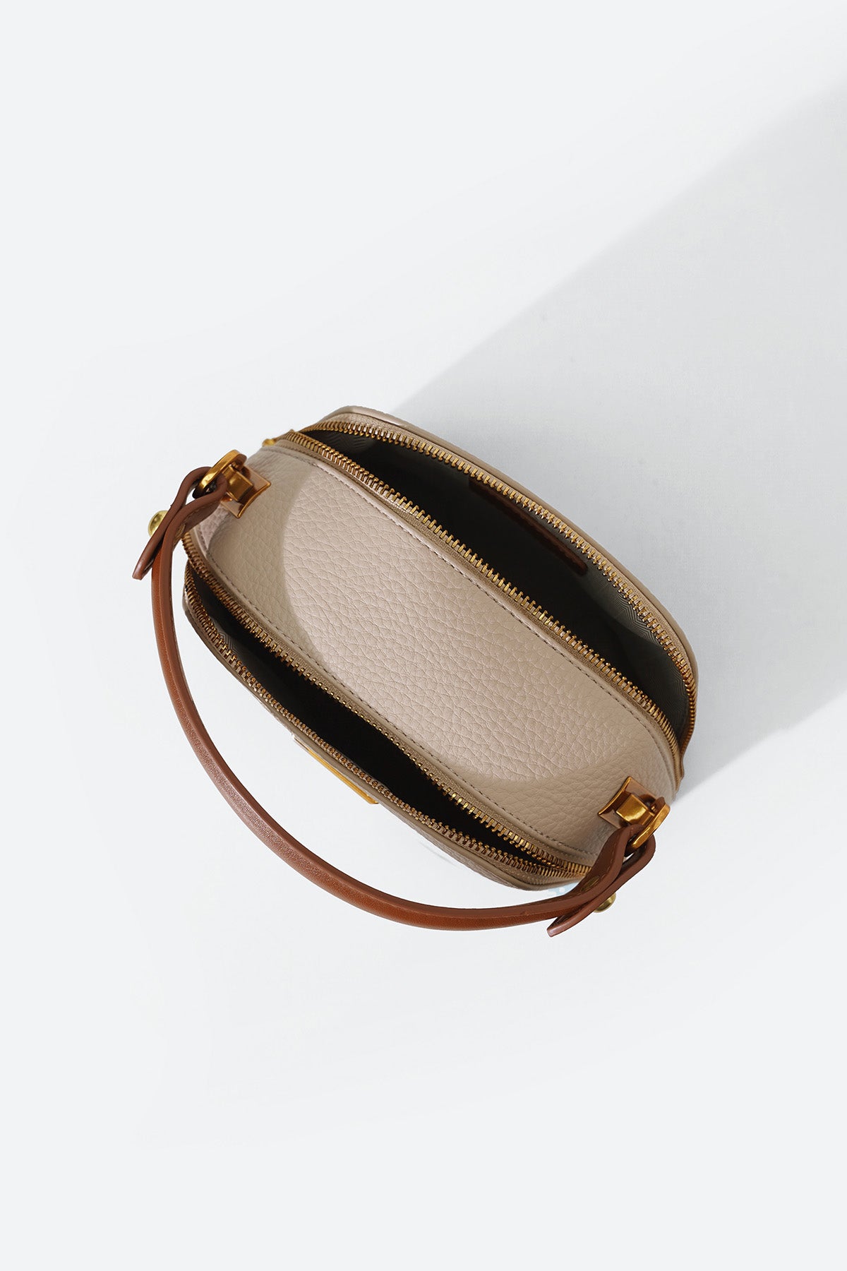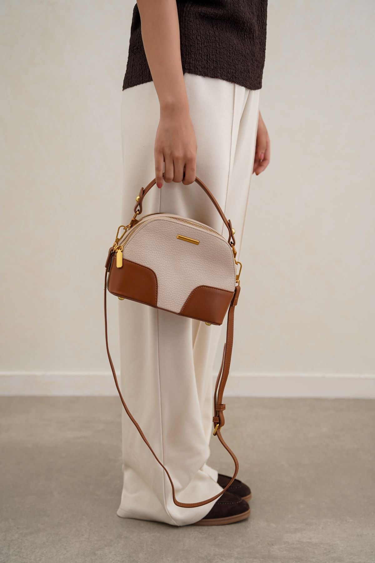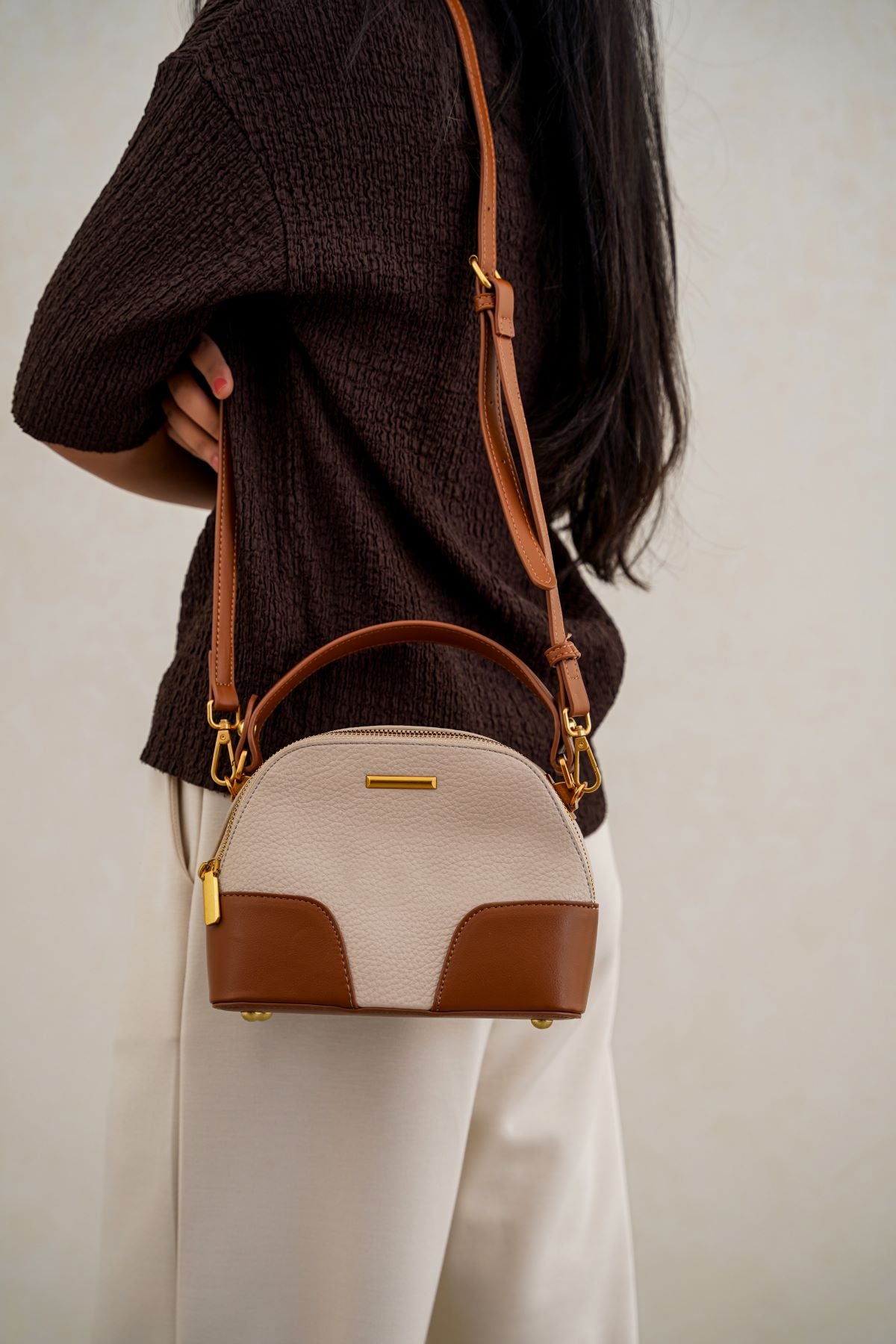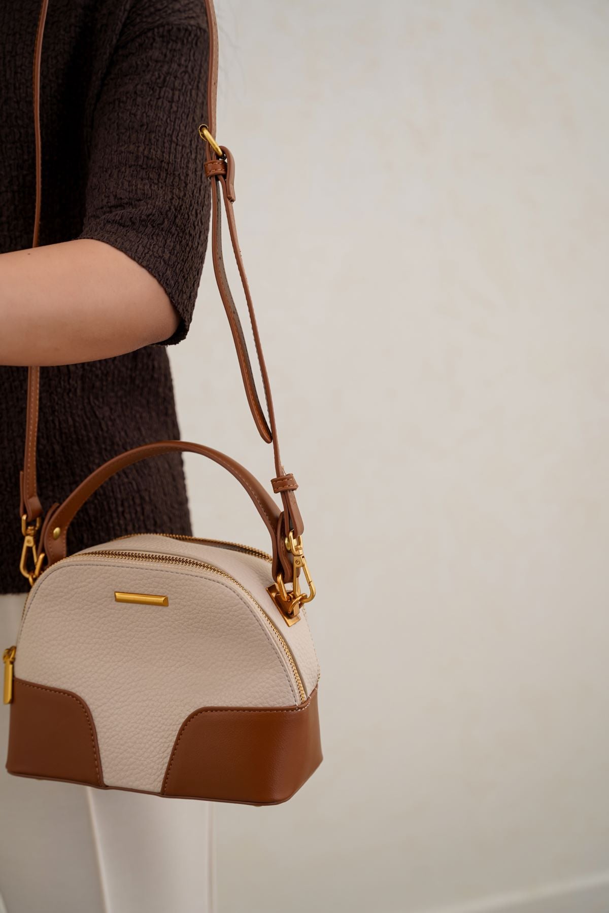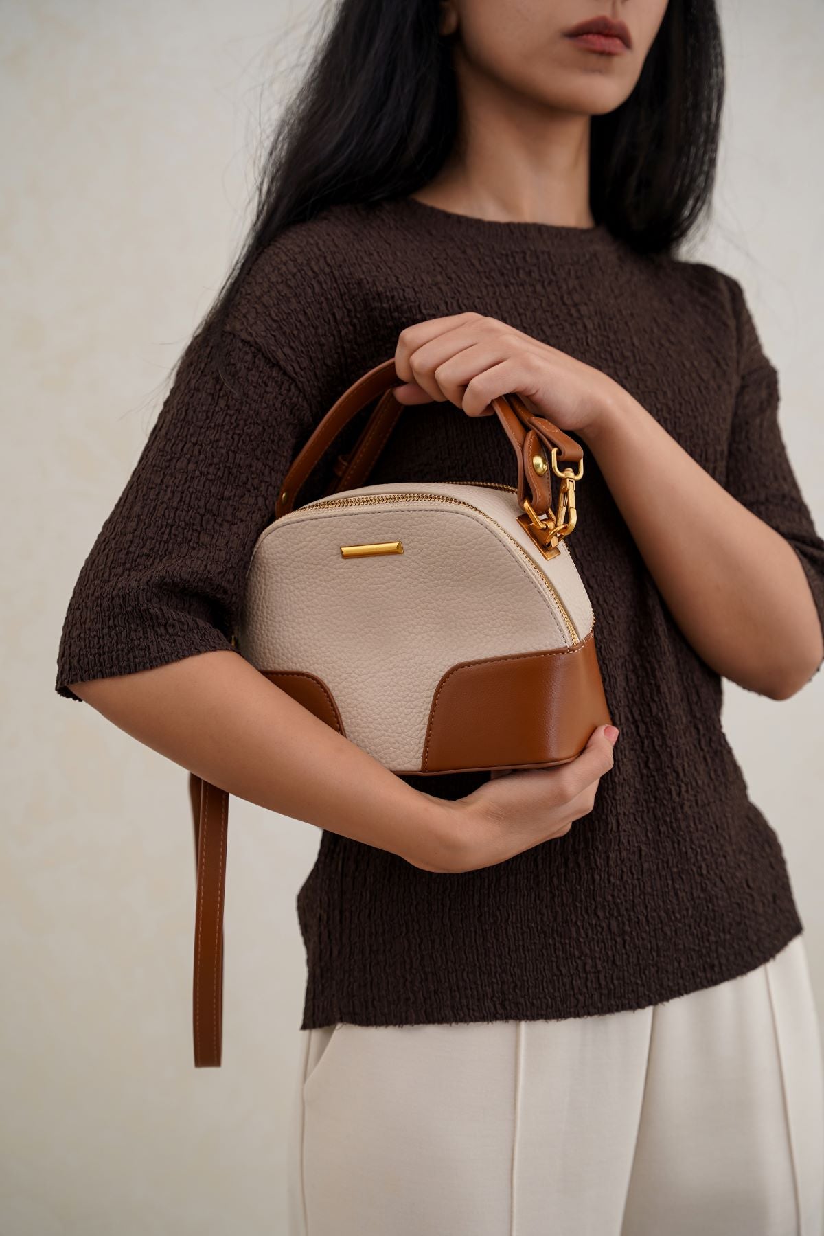 A mid sized and versatile bag, can be worn as top-handle or cross-body. Comes with two main pockets and an additional inner card pocket The longer strap is adjustable and detachable.