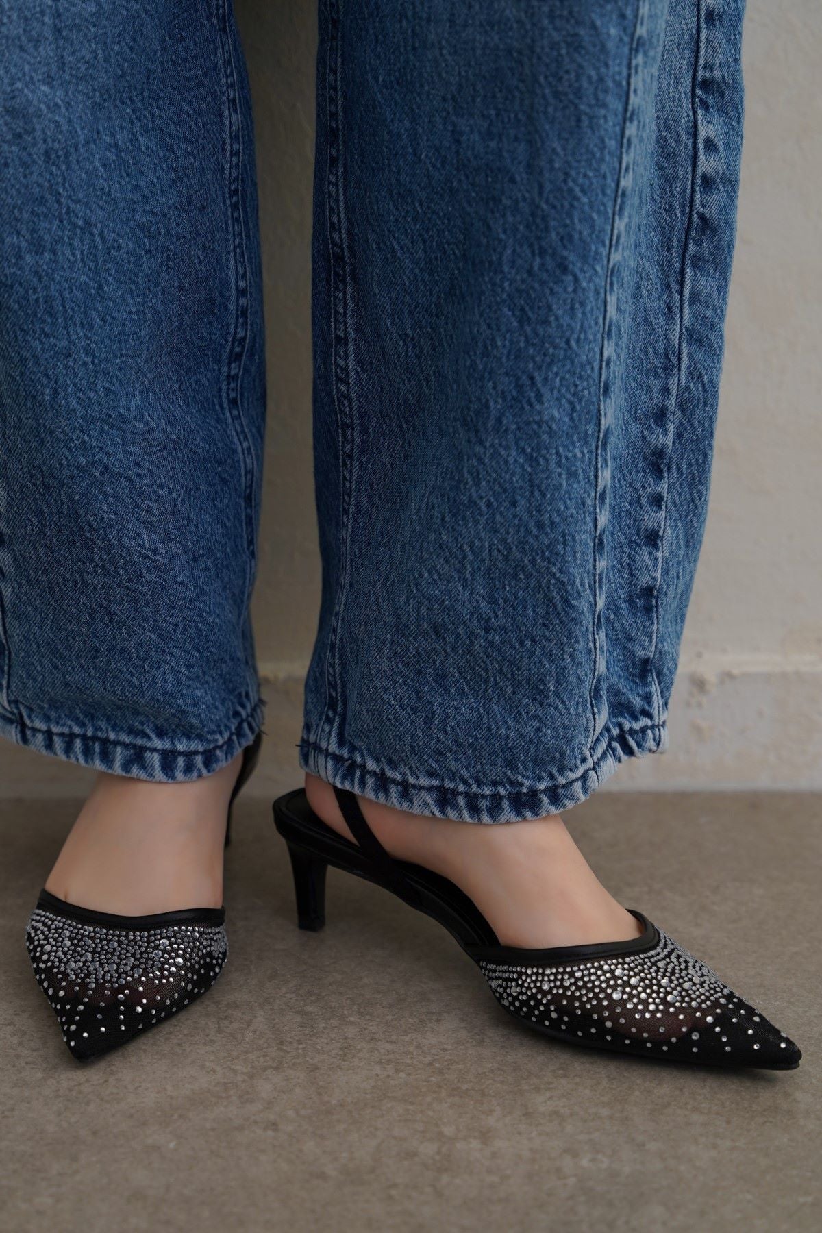 Crystal studded party heels with comfortable insole and anti-slip outsole.