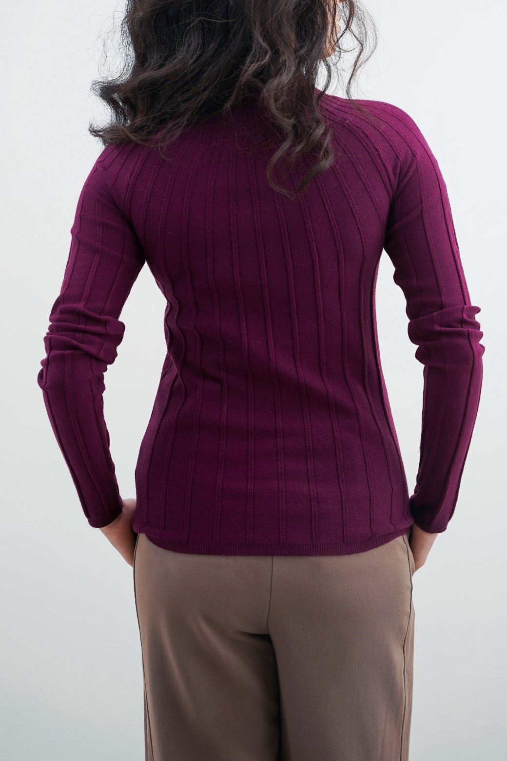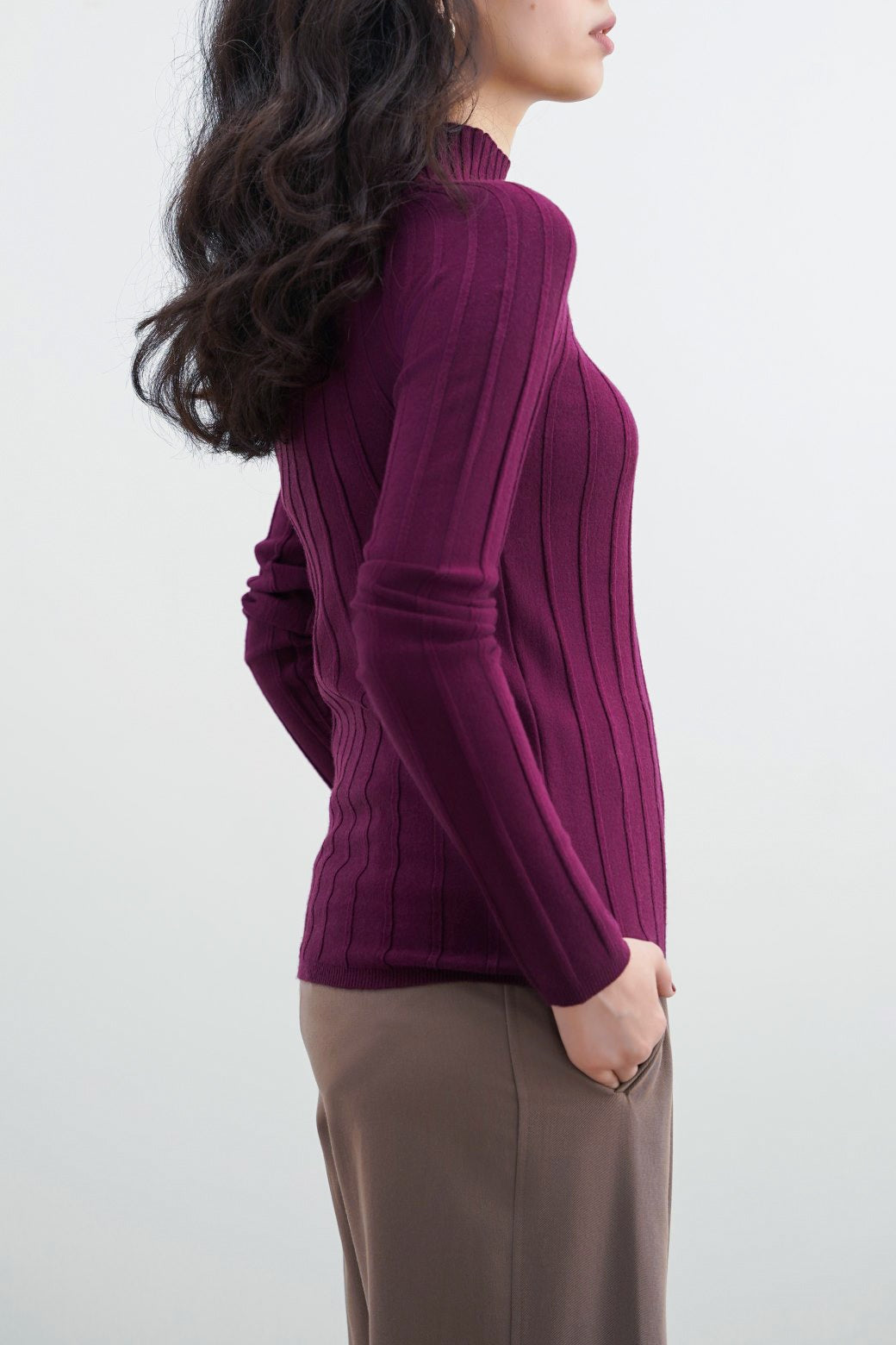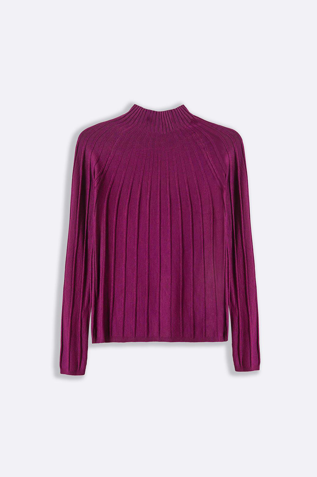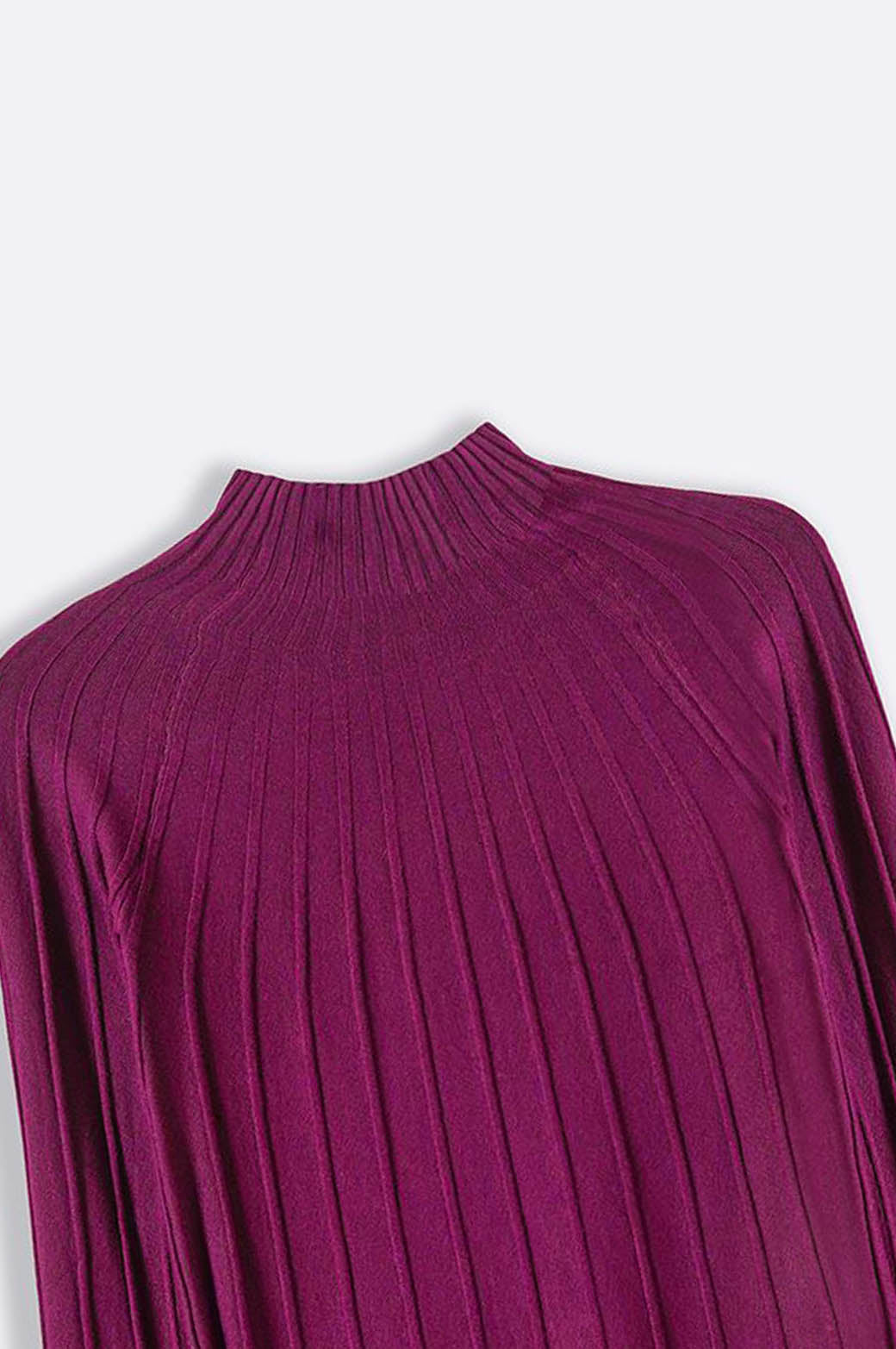Design details: High neck sweater with soft knitted texture and raglan sleeves.