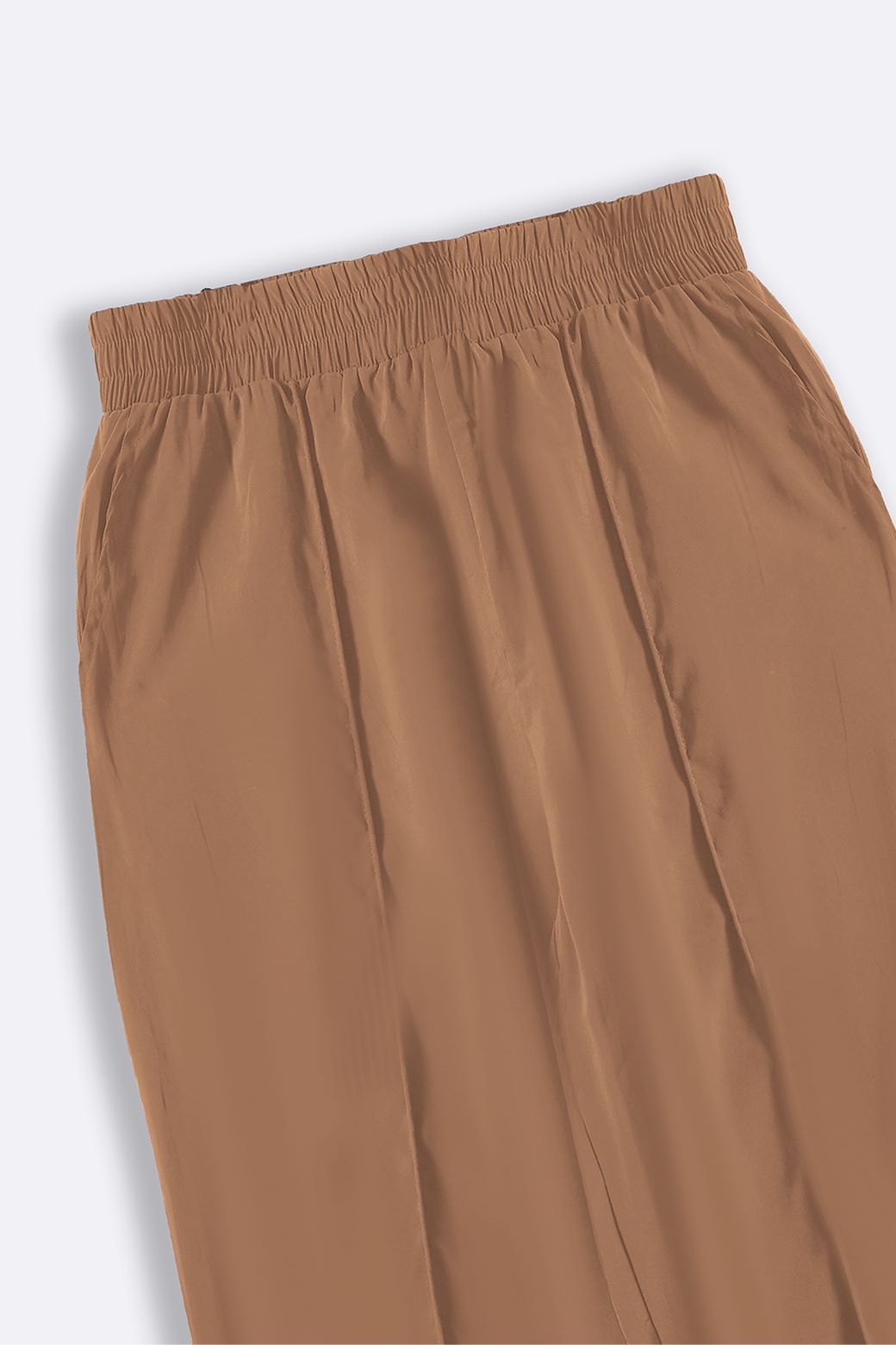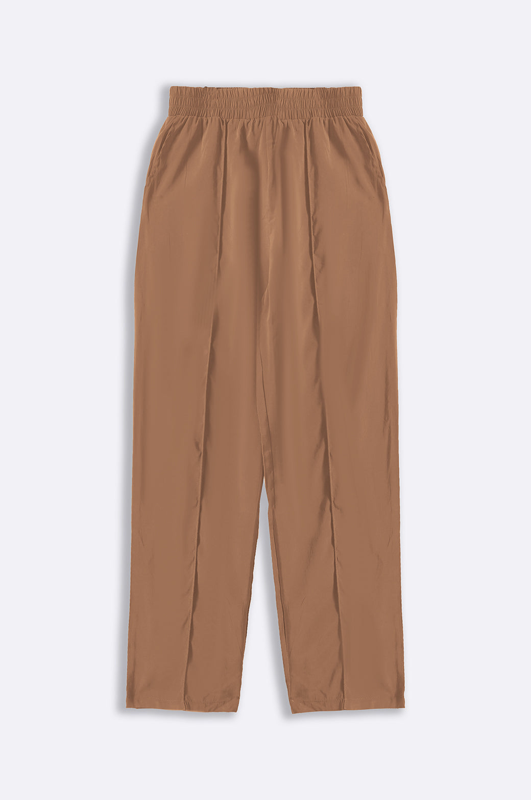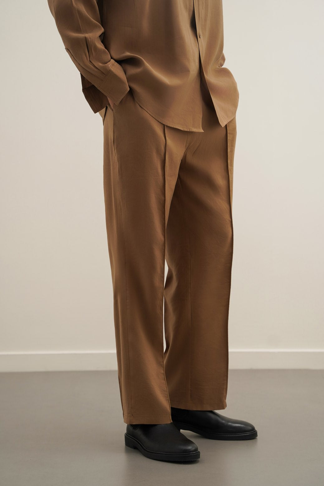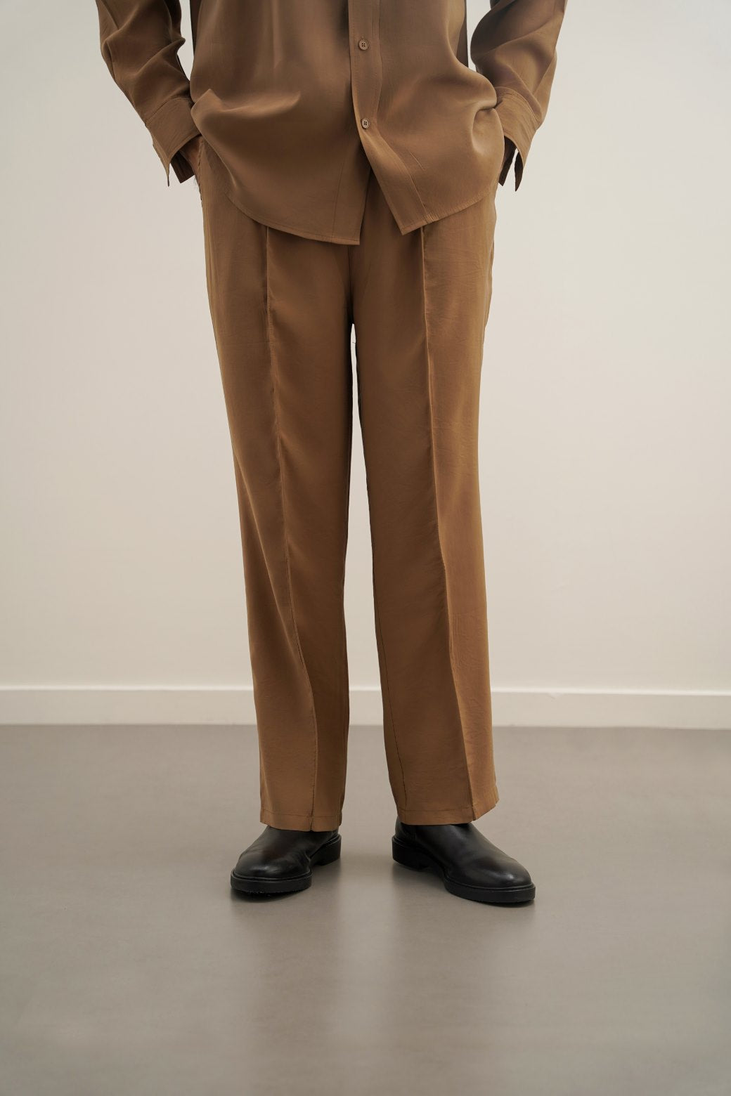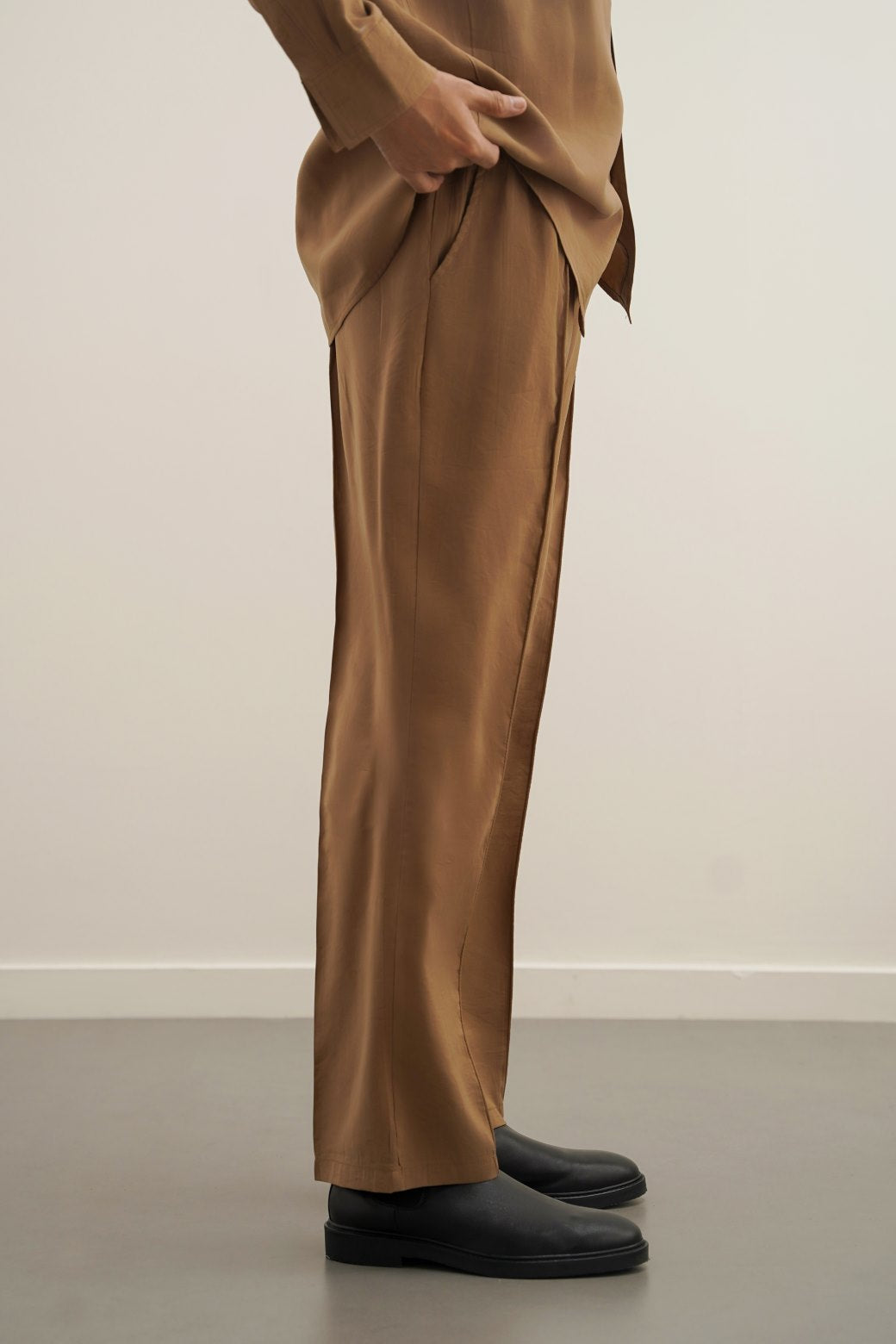 Design details: Silk trousers with a front pintuck pleat and an elasticated waist band.