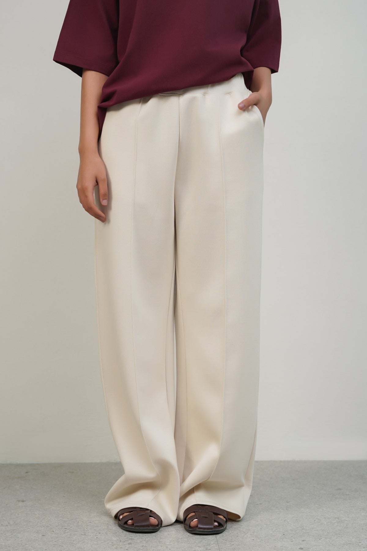 Design details: A straight-fit design trousers with pleats at the front along with an elasticated waistband and side pockets.