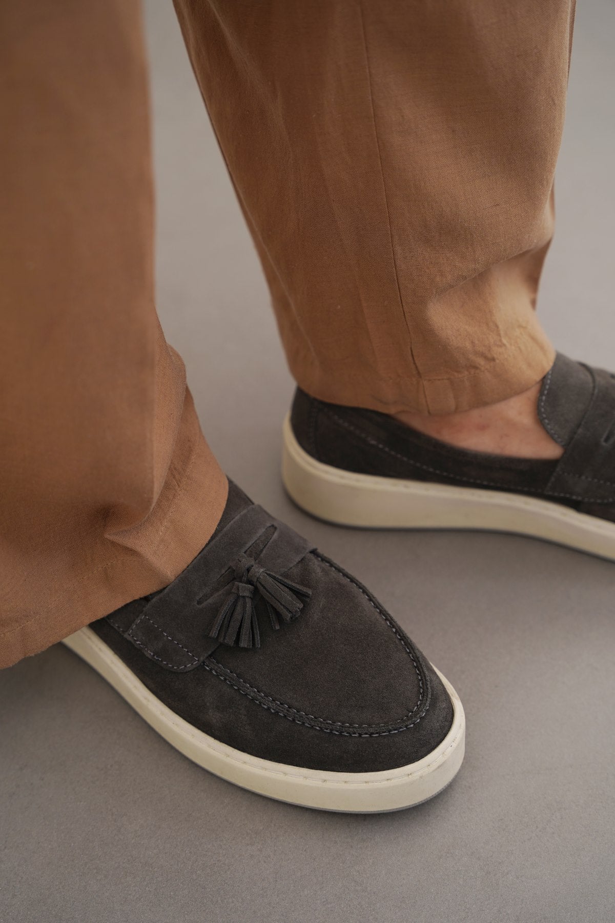Design details: Comfortable genuine suede leather tassel loafers with cushioned leather insocks and anti-slip contrast TPR outsole.