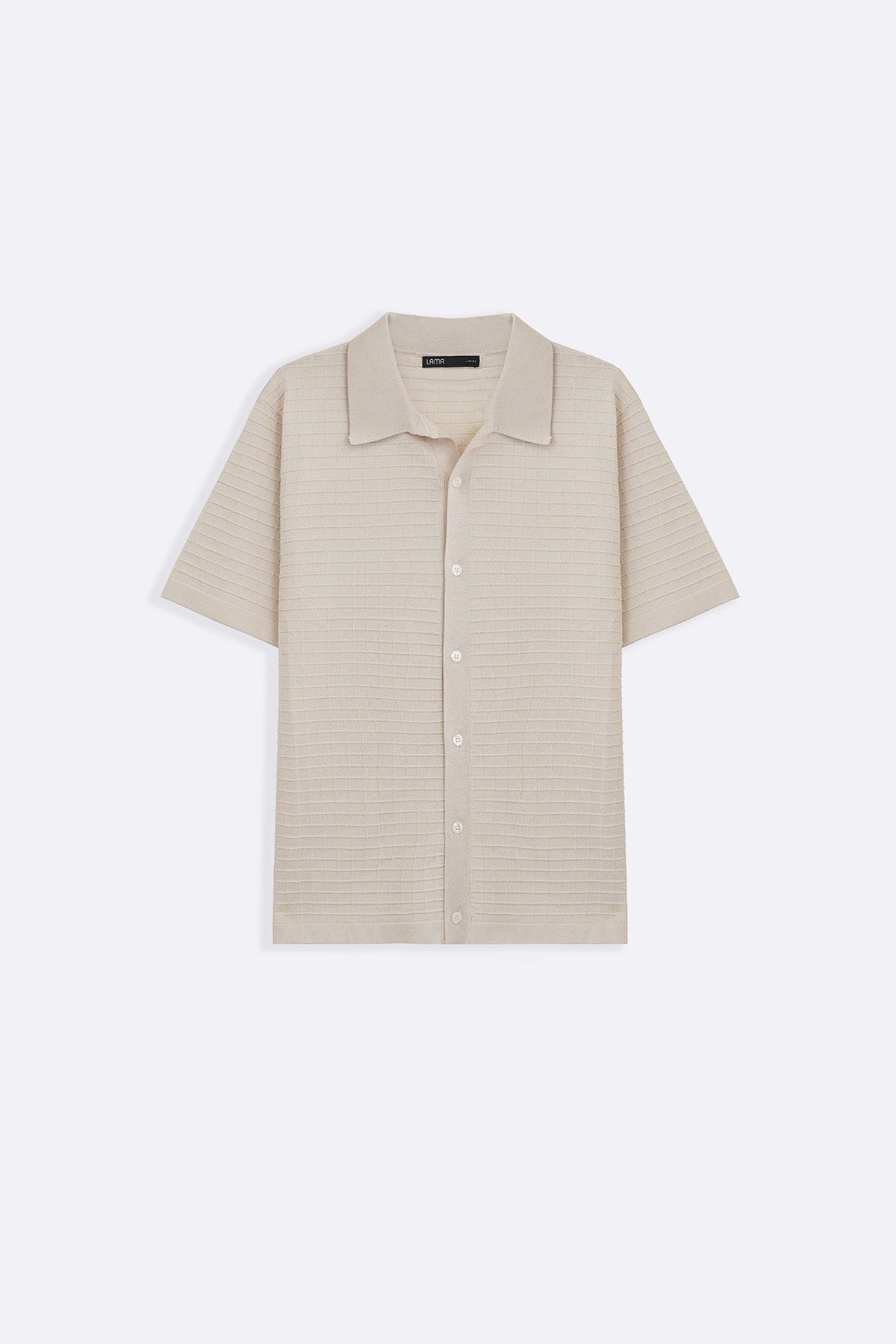Design details: Textured sweater knit shirt with half sleeves, front button closure and collar. Stretch: High