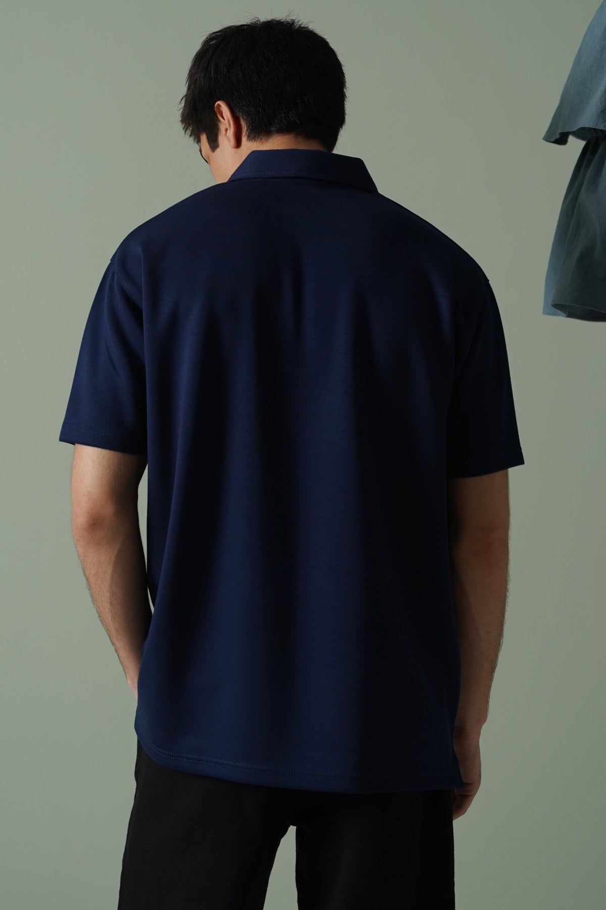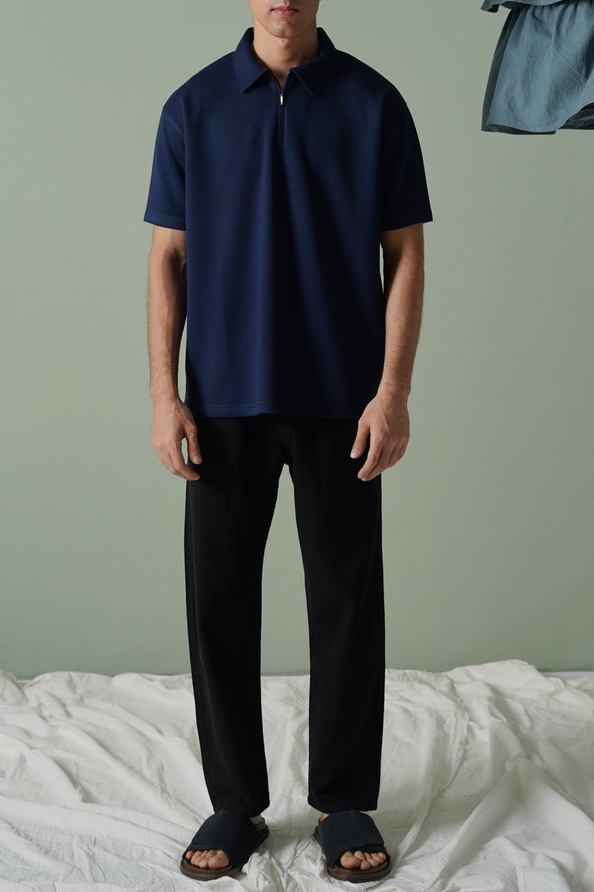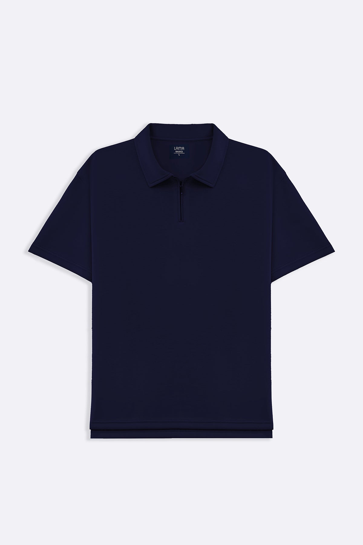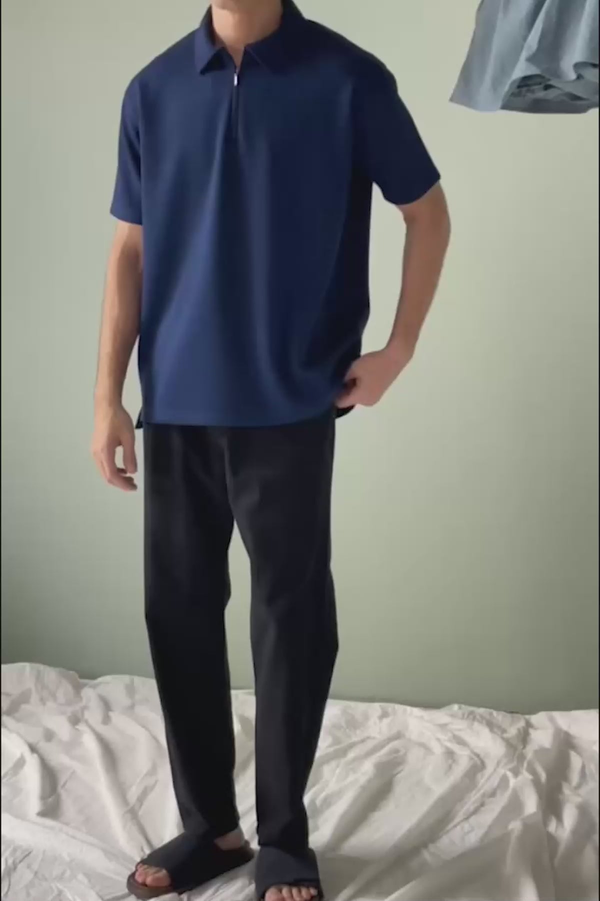 Design details: Neoprene zipper polo with short sleeves and side slits.